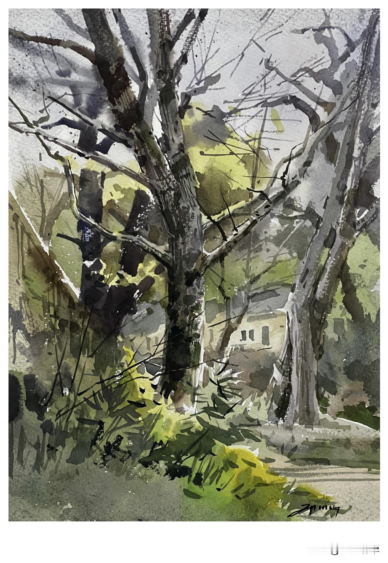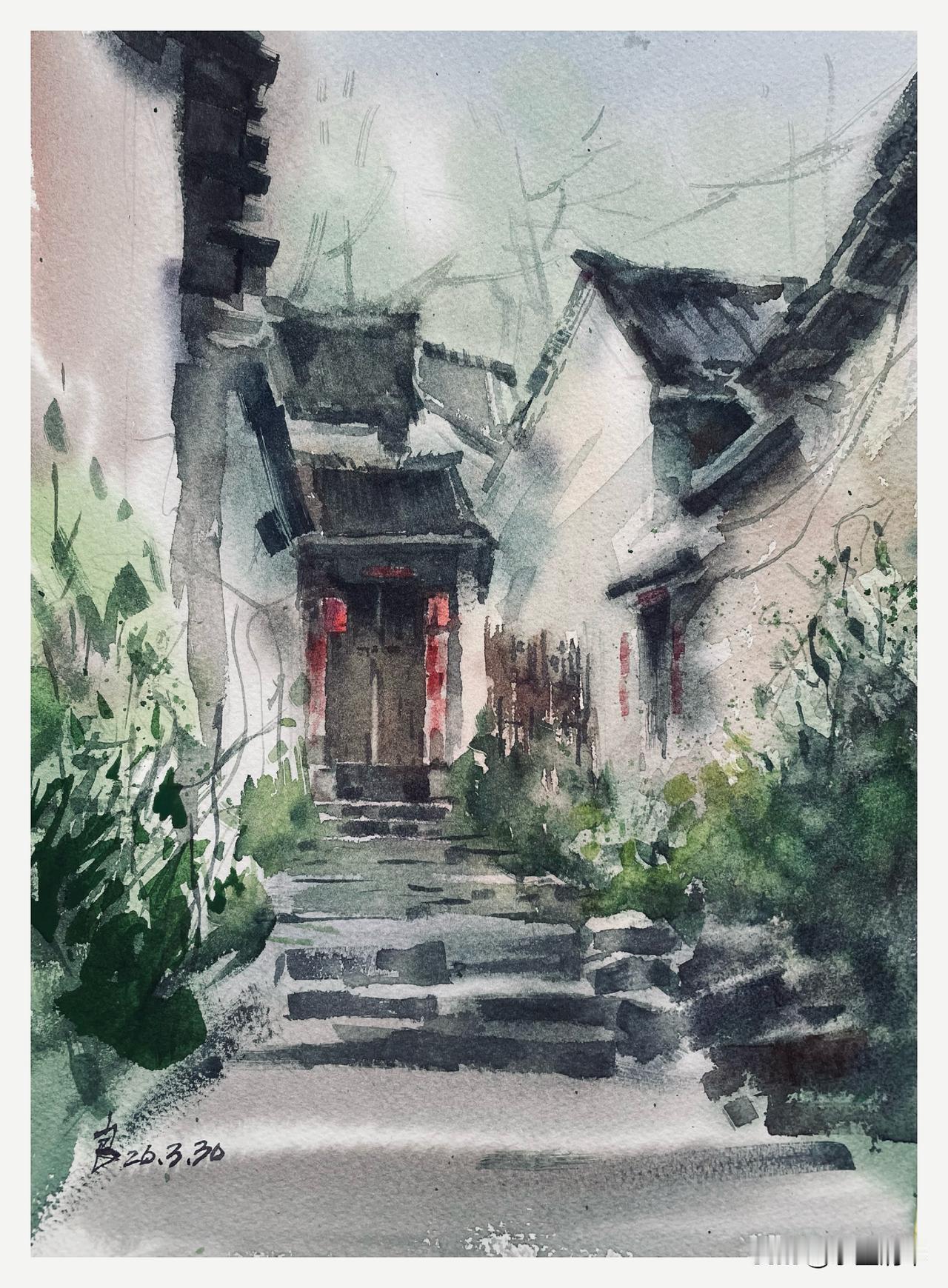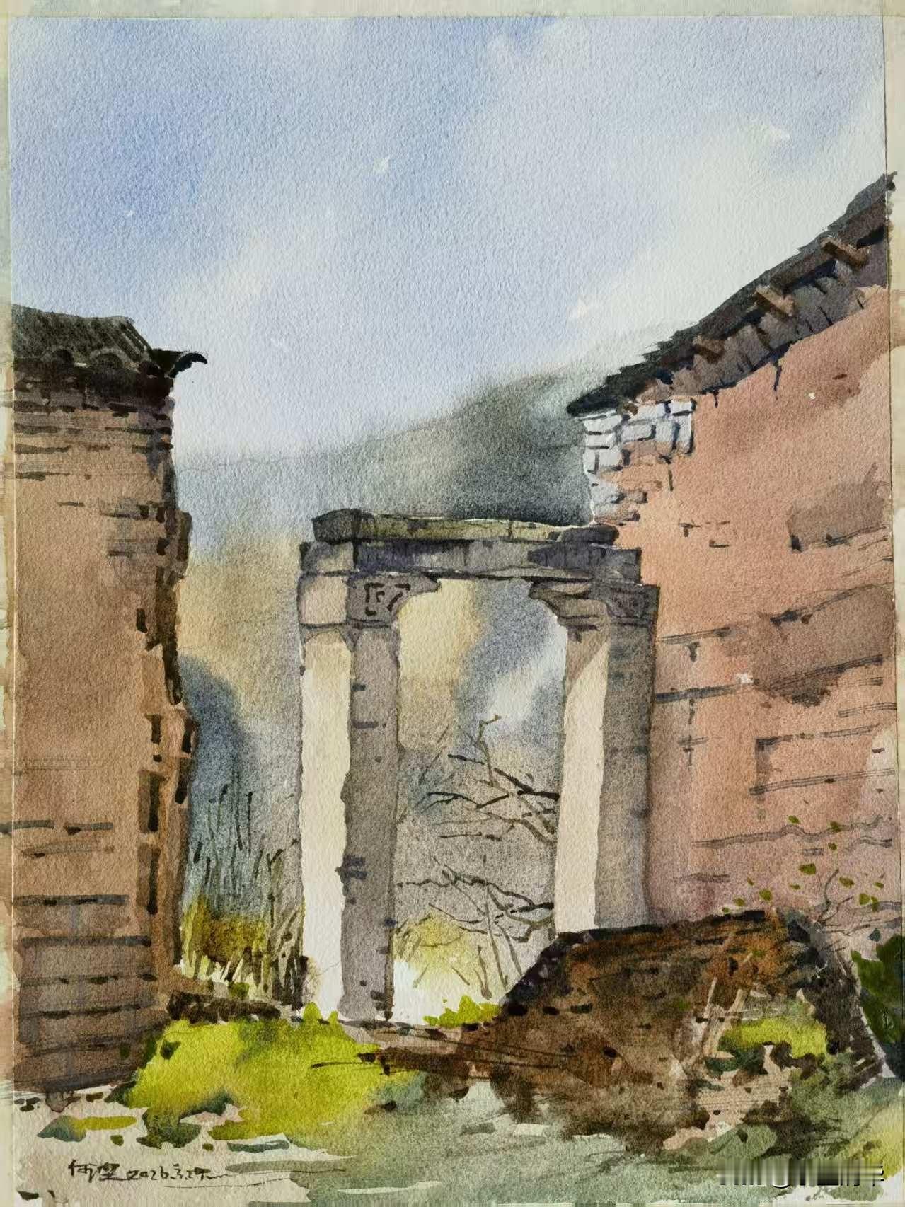 水彩作品赏析全国水彩画名家走进大别山新县西河湾古村写生作品欣赏