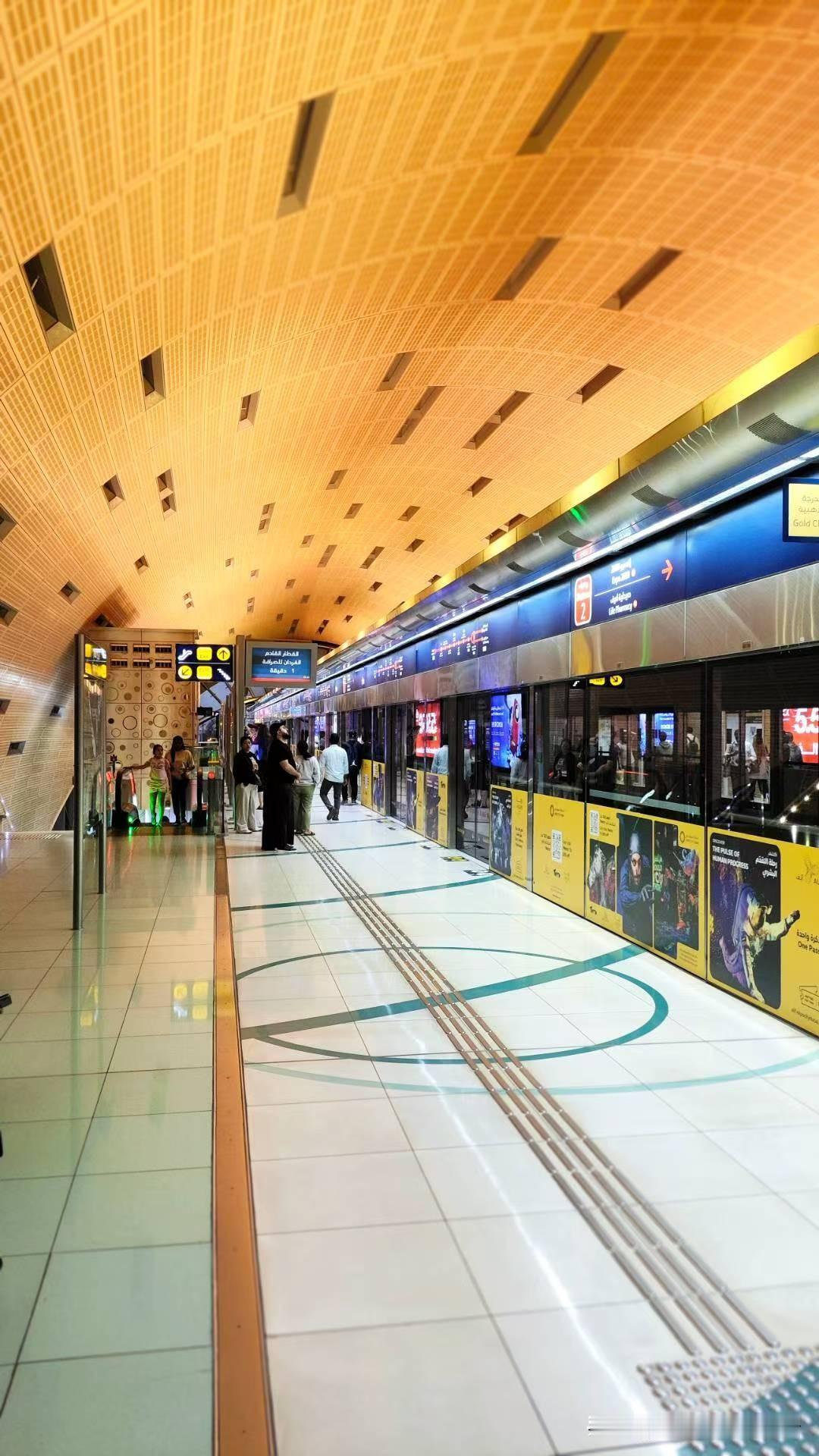 ​ 迪拜地铁目前共有红线和绿线两条。我昨天出机场就买了交通卡,可以坐地铁也可以坐公交。但每次刷卡感觉挺贵,三站地3迪拉姆,7站就是5迪拉姆,交通卡卡费6迪拉姆。虽然有点贵,但用交通卡还是挺方便的。红线大部分在高架桥上,两边是高楼大厦,因为是无人驾驶,车头可以直接看到窗外震撼景象(图一)。