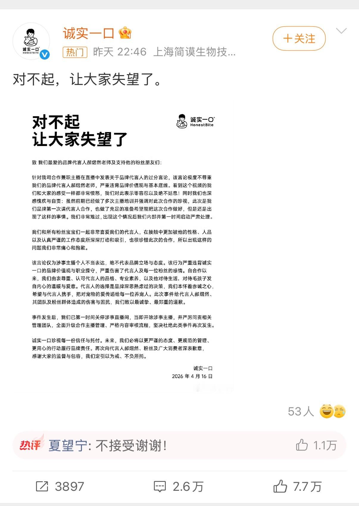 只能说这一波艺人和品牌都遭了无妄之灾,公司内部还是做好员工培训吧诚实一口道歉 诚实一口 郝熠然