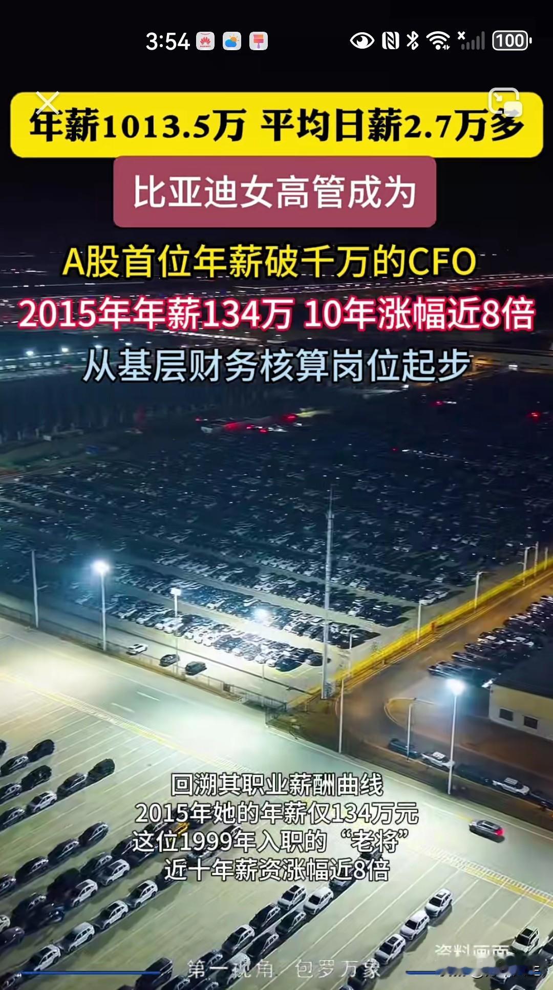 比亚迪女高管年薪1014.5万,毕业与江西财经大学你,99毕业就入职比亚迪,从基层财务核算岗位起步,现任比亚迪财务总监,2015年年薪135万,十年涨幅近八倍,现平均日薪2.7万多。