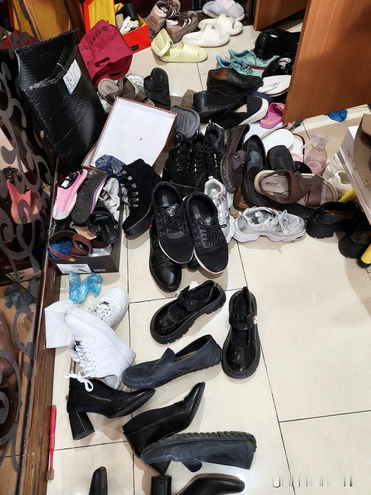 宝妈的鞋子最多,我没有仔细数,也没有时间去数。