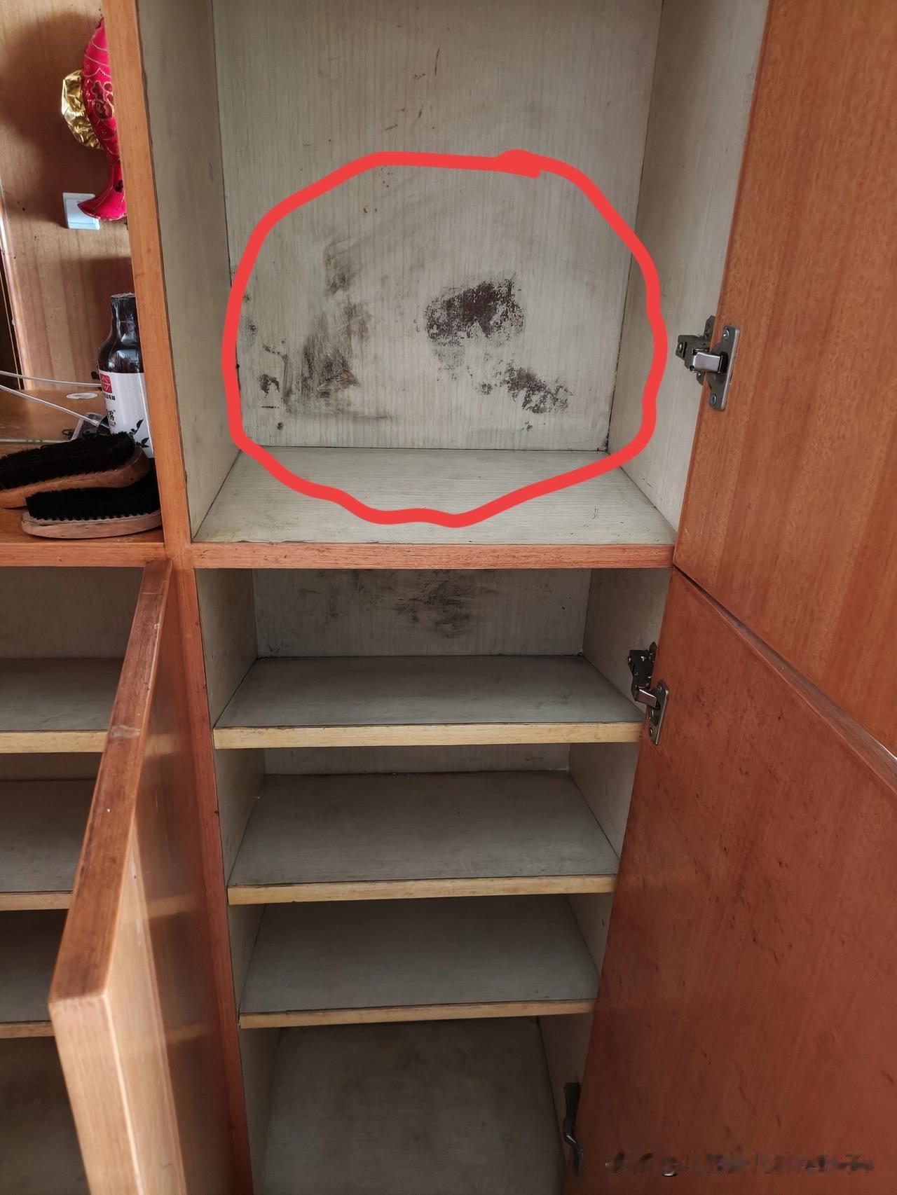 结果昨天把那些鞋盒子拿开后,发现鞋柜的墙上发霉了。
