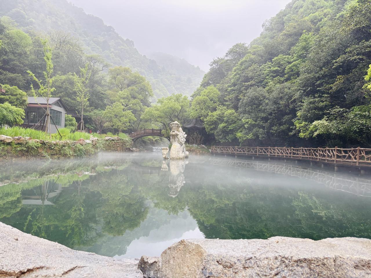今天雾蒙蒙,下着小雨,打着雨伞,去杭州白龙潭游玩。沿着山路往里走,溪水声渐渐清晰。转过弯,白龙潭就藏在两山之间,安静得像未曾被人发现。