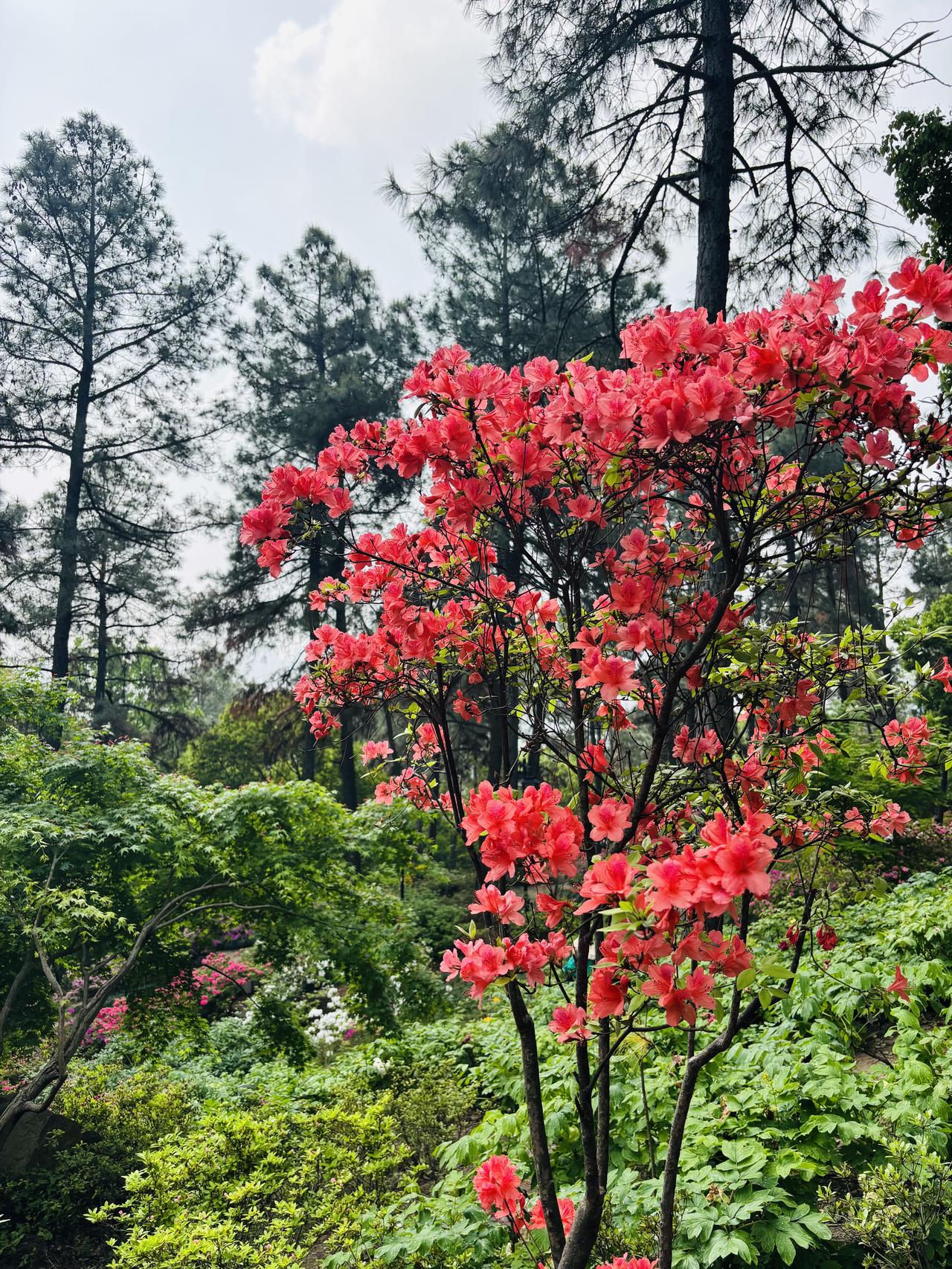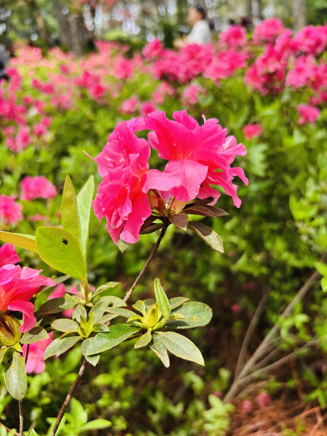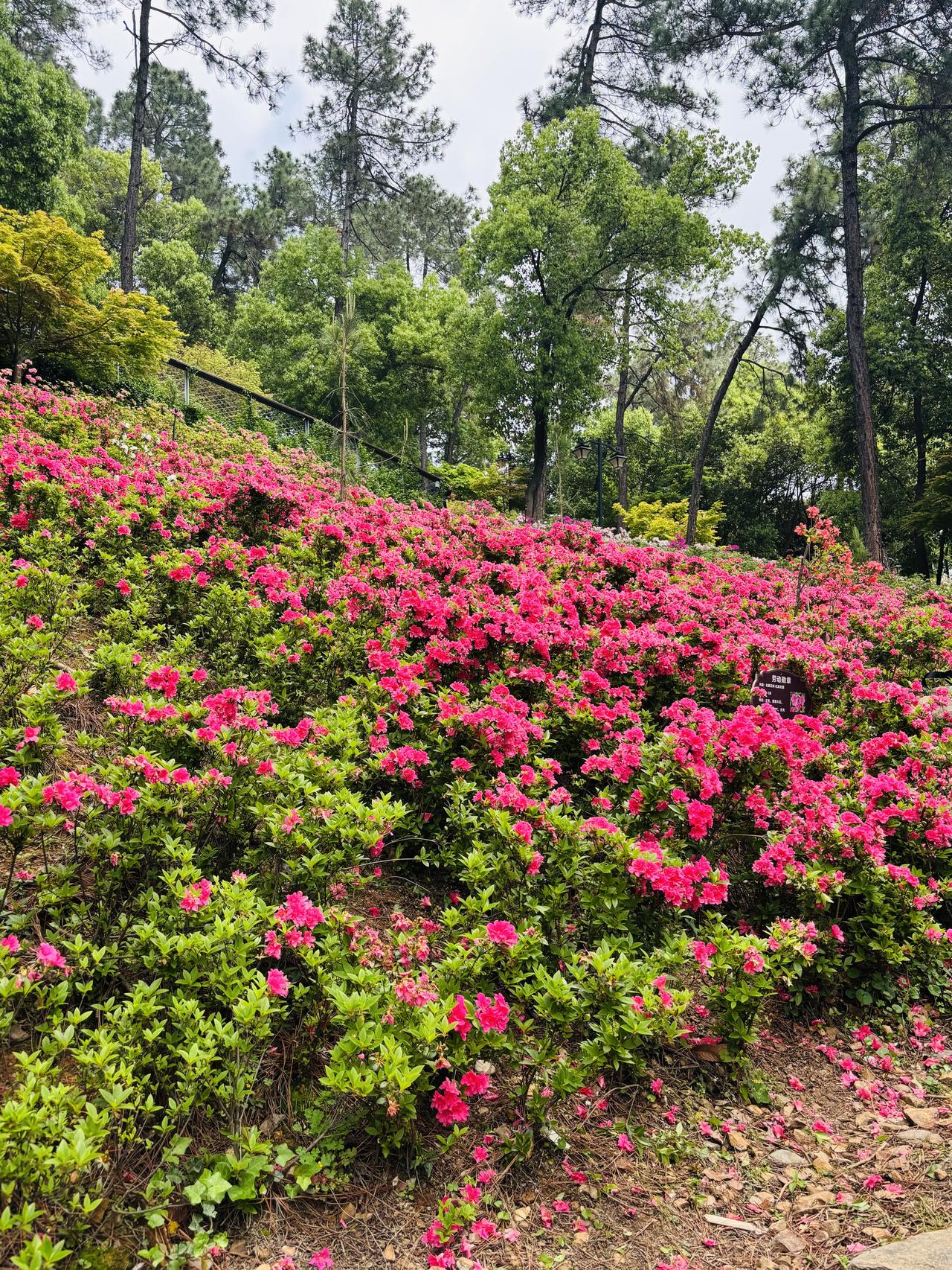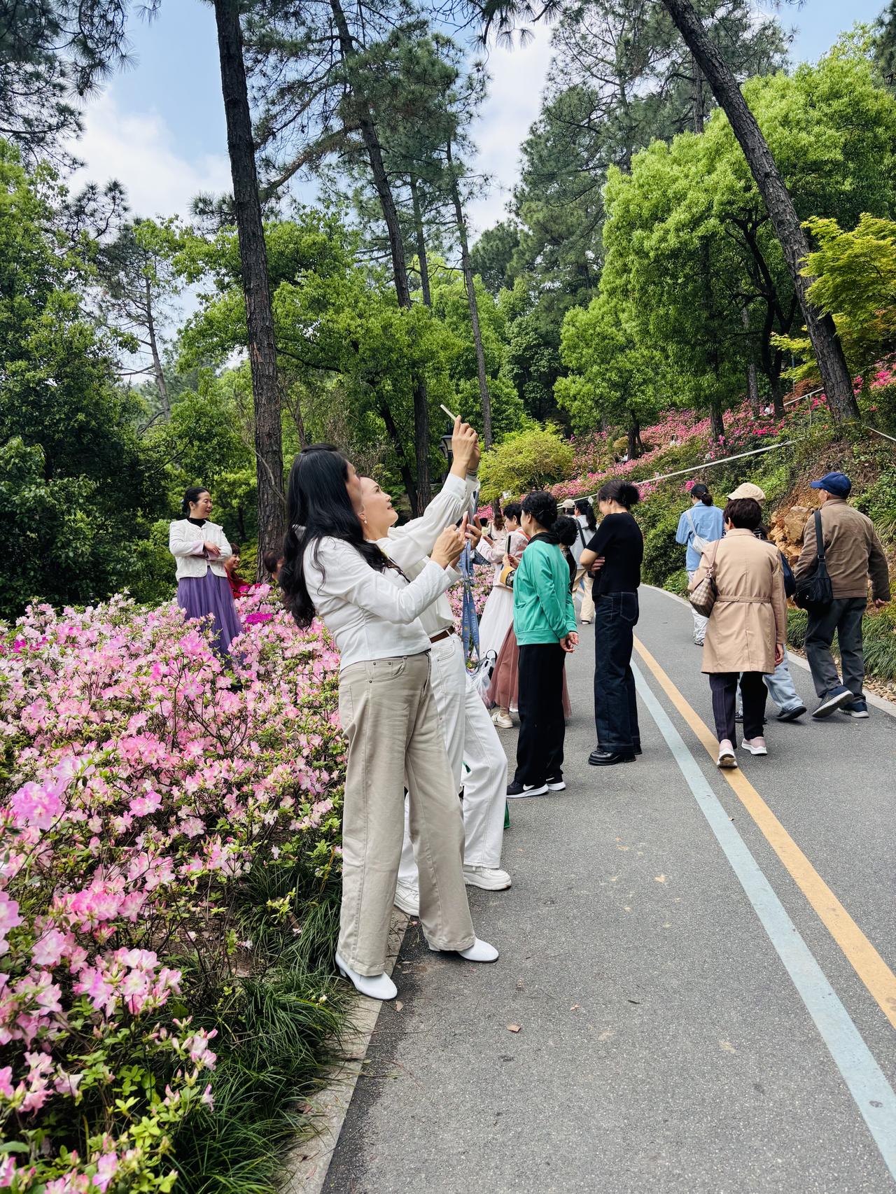 今天与一个老师和一个同学,我们三人一起去杭州临平山游玩,临平山现在正是杜鹃花满山遍野盛开的时候,来赏花的人很多,来拍照的人很多,真是可以用人山人海来形容。
