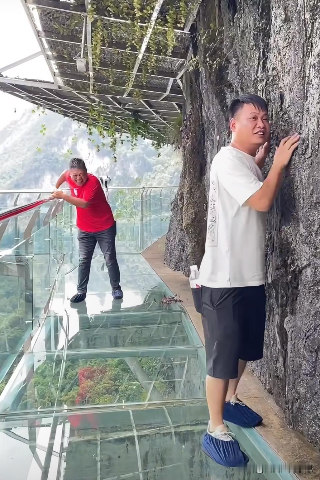 其实玻璃栈道有很多人都害怕,但还是想挑战一下自己,我觉得走在上面最好的方法就是大胆的往前走,不要往下看。