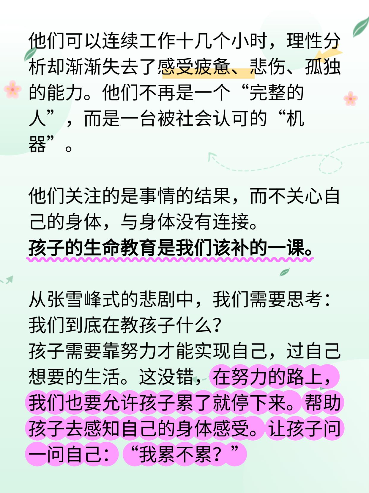 在教育中,很多人会教育孩子要怎么努力,却很少有人关心他们累不累?我们如何看待生命?