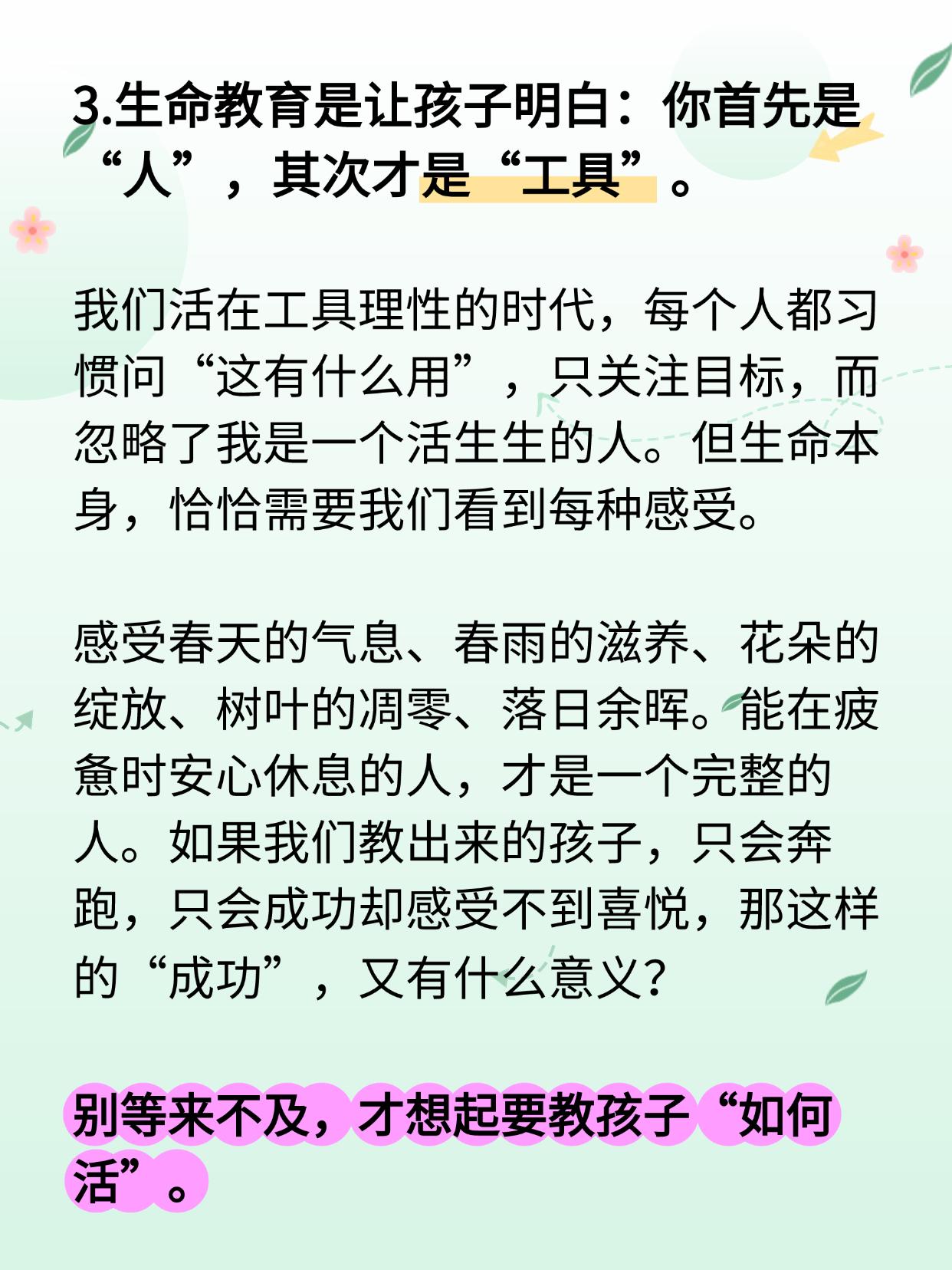 3.生命教育是让孩子明白:你首先是“人”,其次才是“工具”。