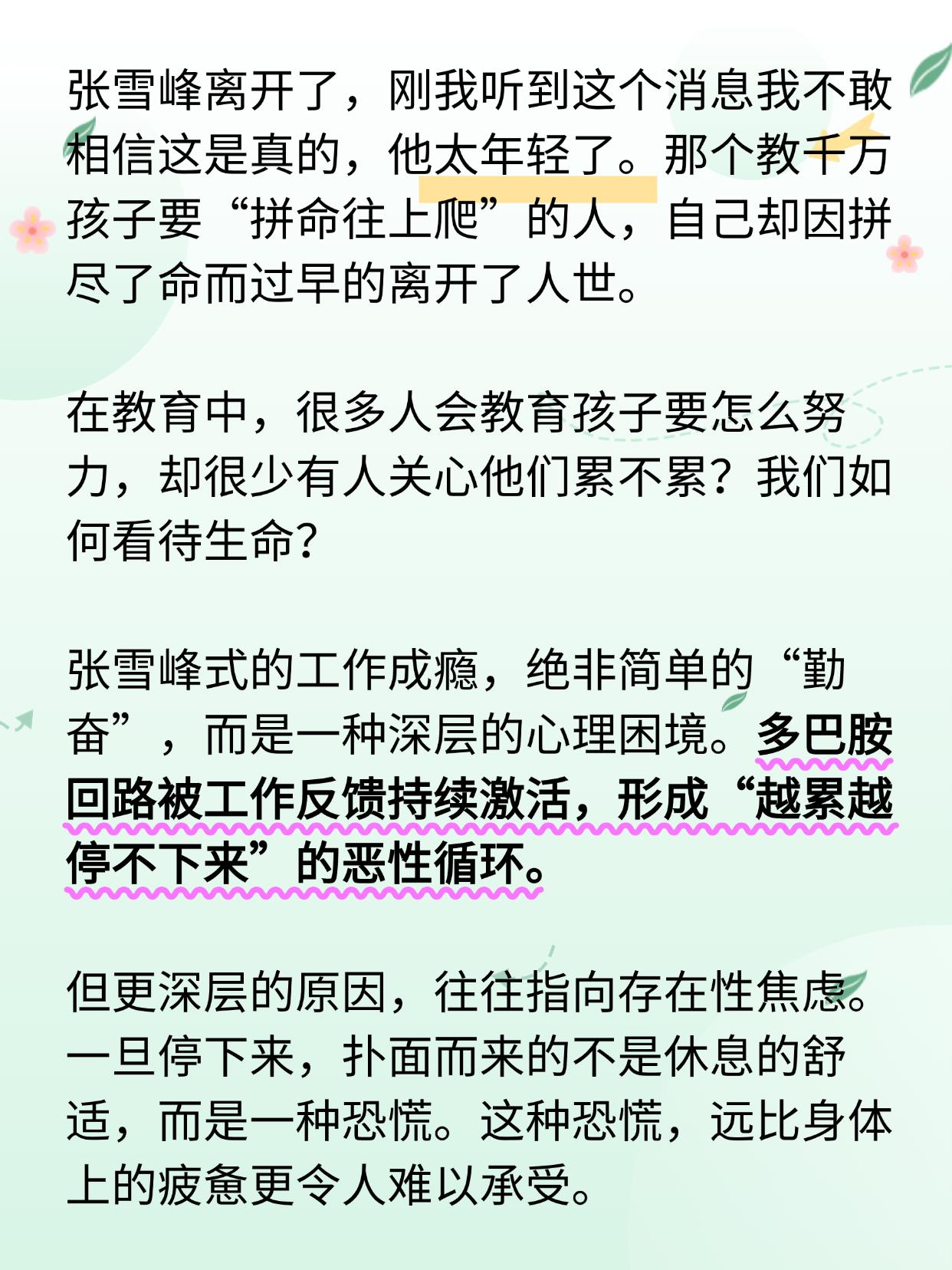 别等来不及,才想起要教孩子“如何活”。 张雪峰离开了,当我听到这个消息我不敢相信