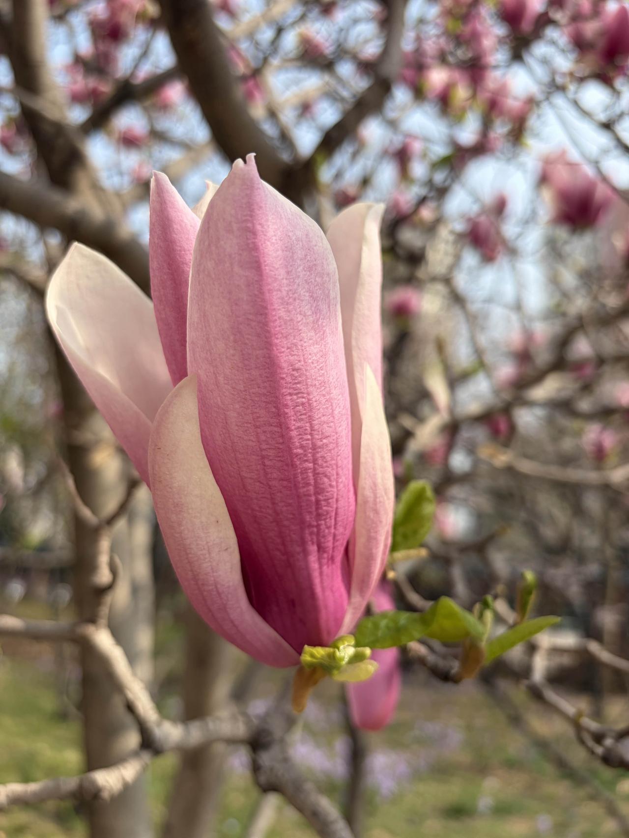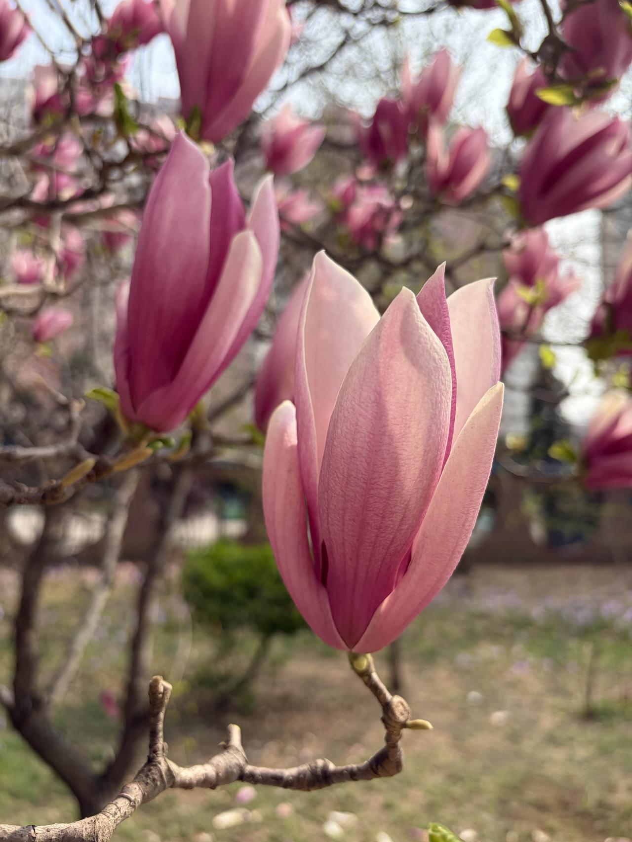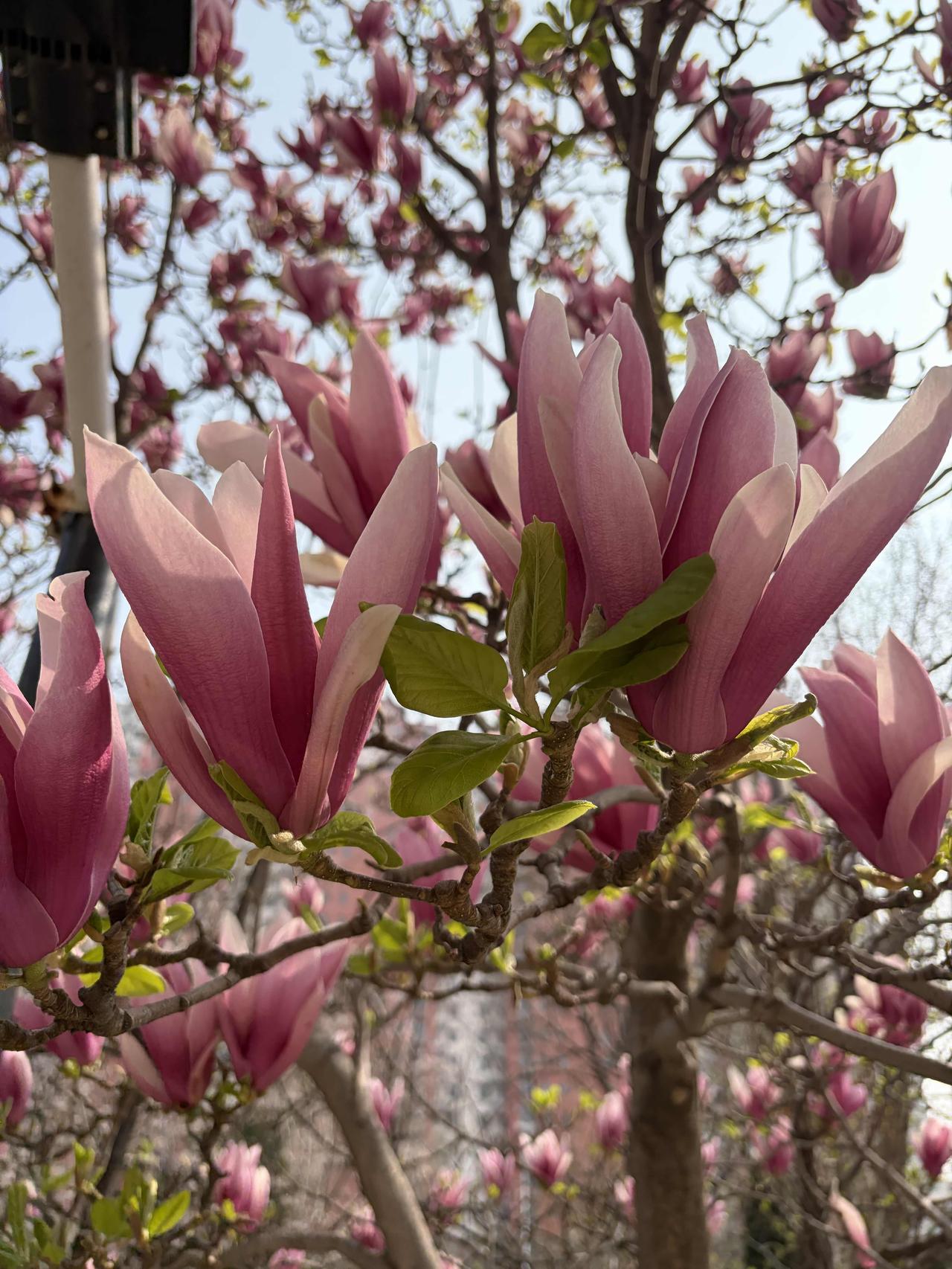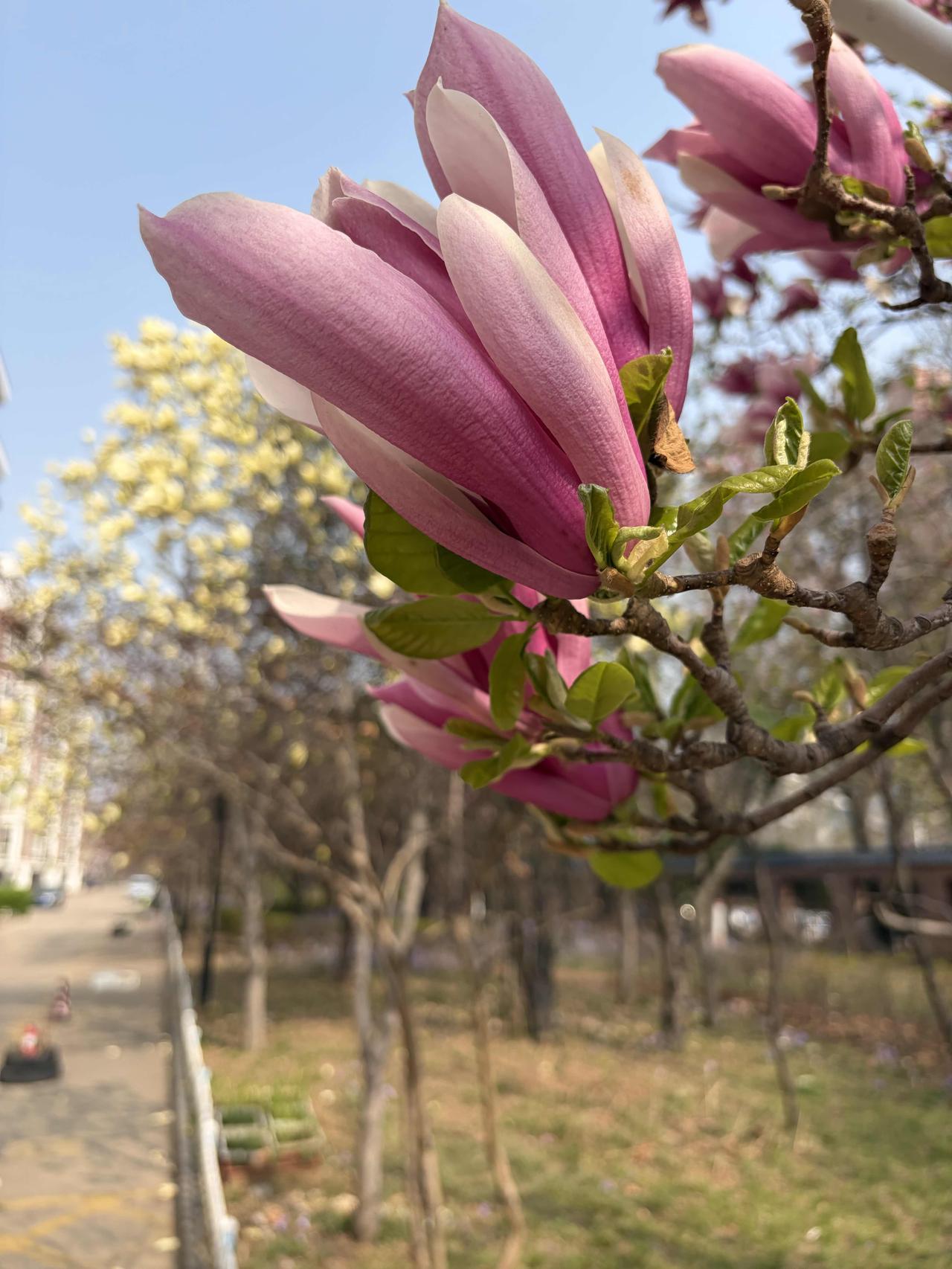 人间四月玉兰香, 朵朵鲜花映太阳。 谁不夸俺家乡好, 身边远处尽风光。