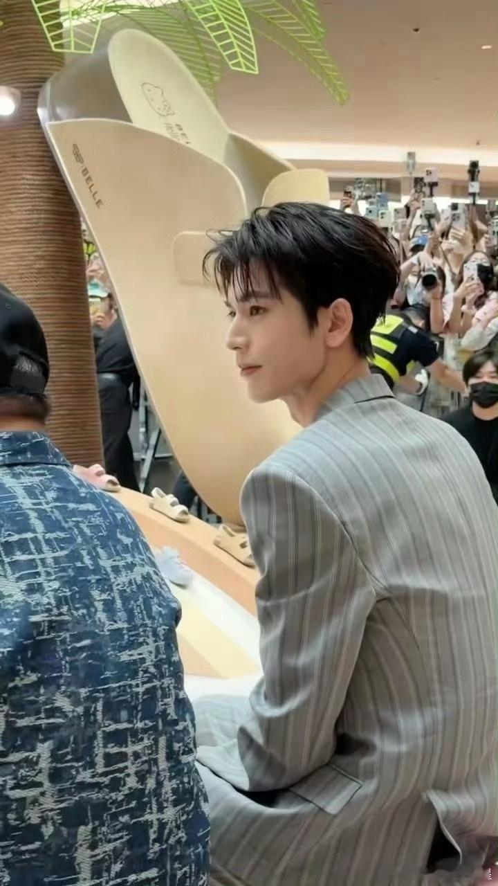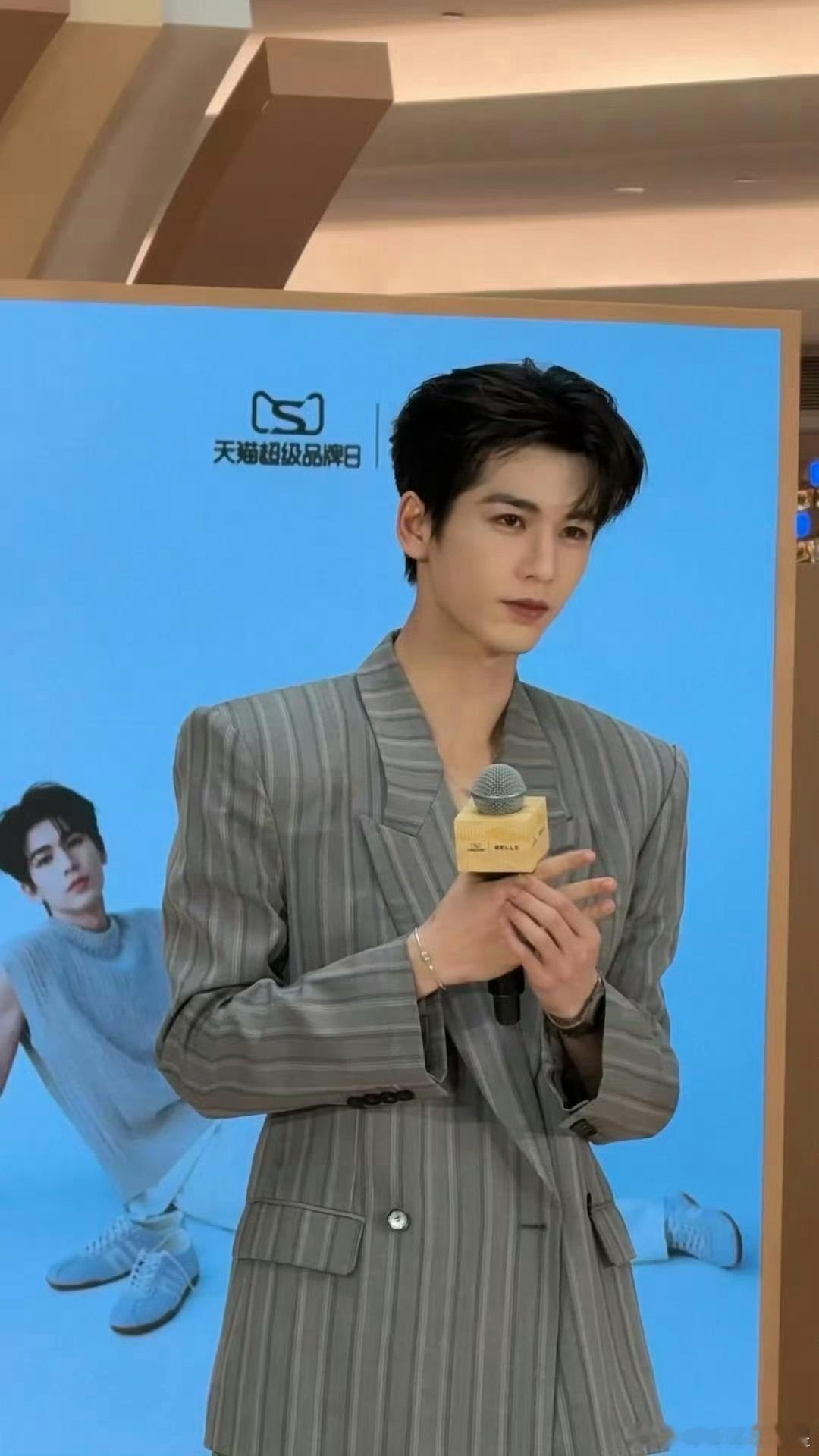 张凌赫深圳线下活动出图张凌赫戗驳领条纹西装张凌赫出席深圳线下活动,身穿戗驳领条纹