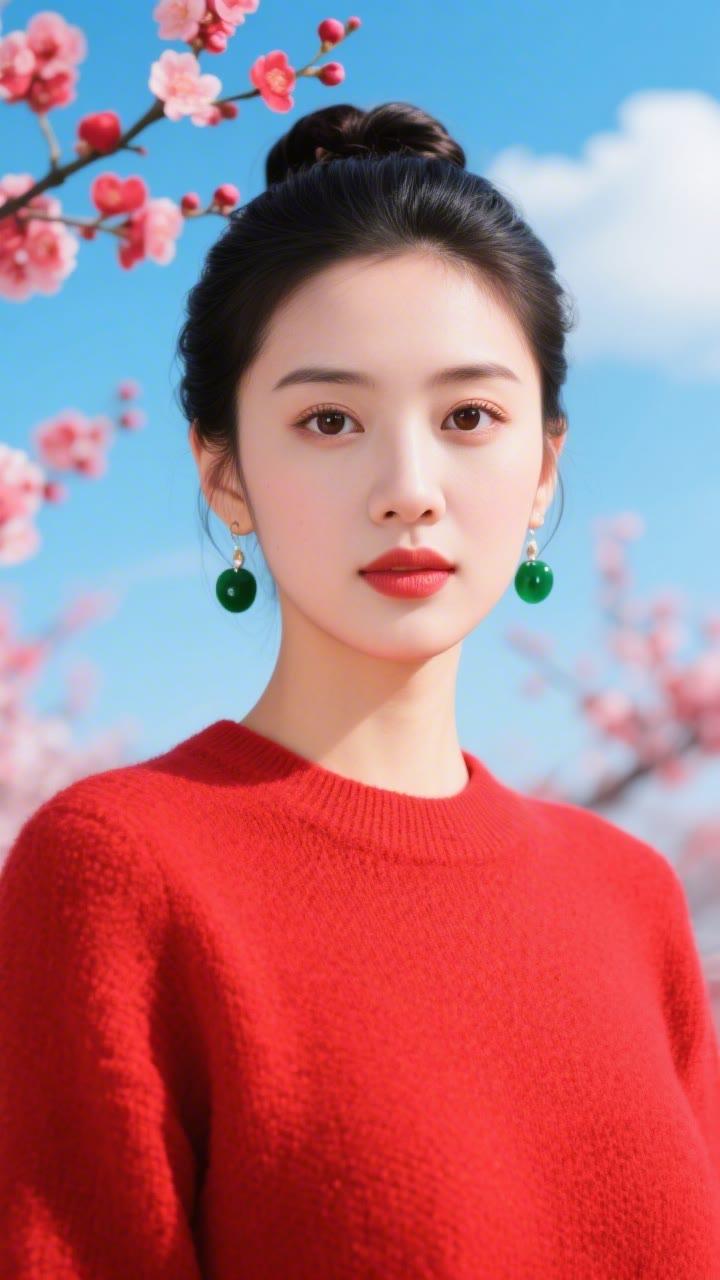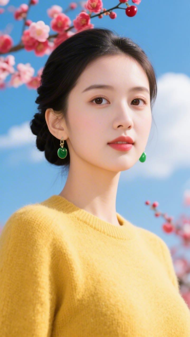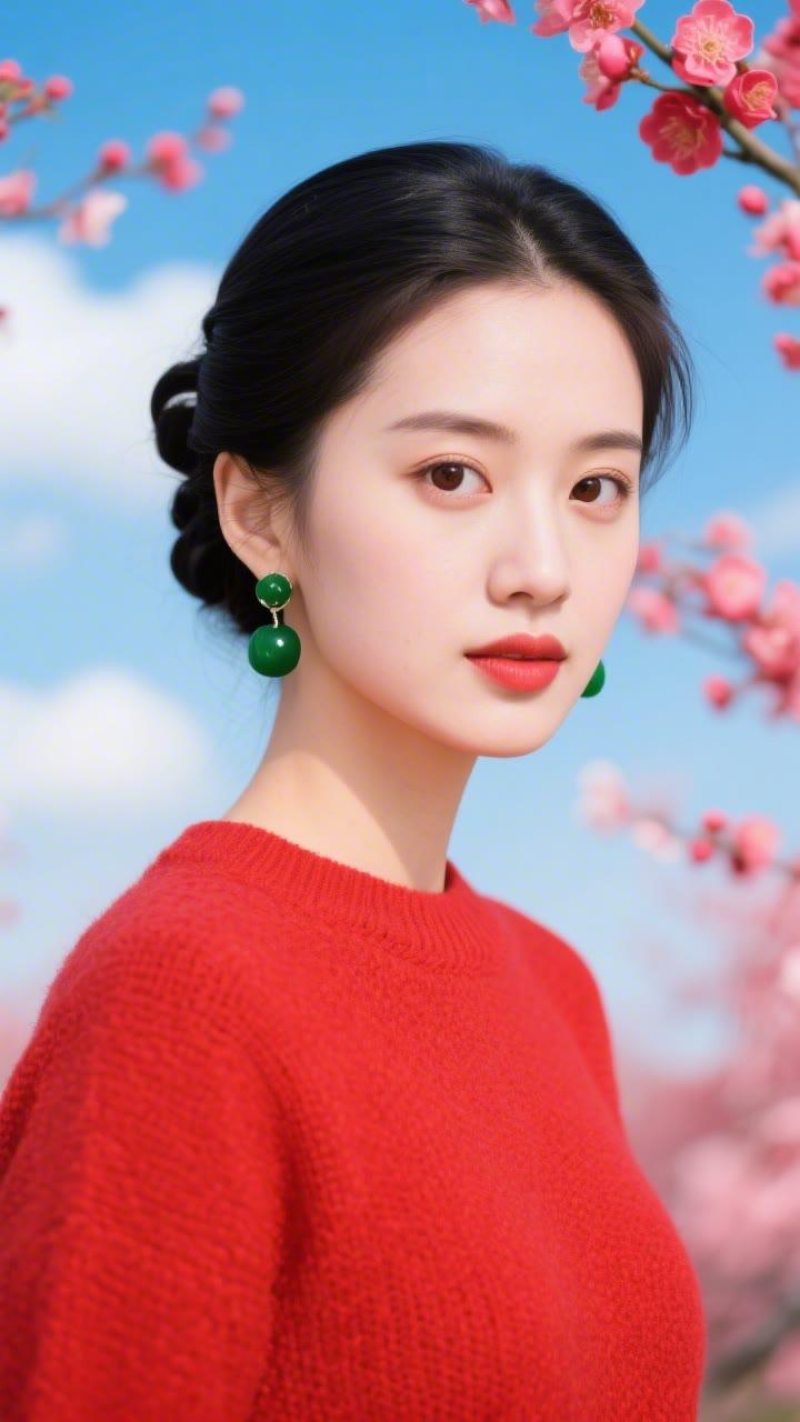 花枝拂面春风里,美人如画意中来。