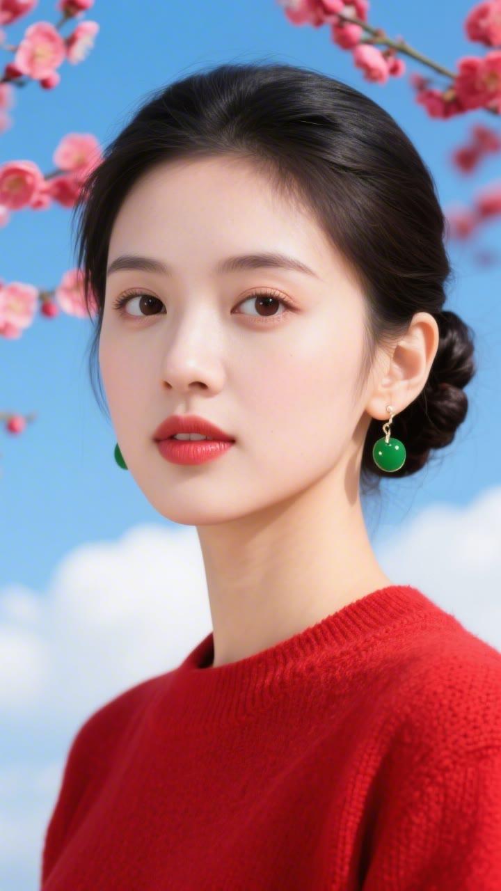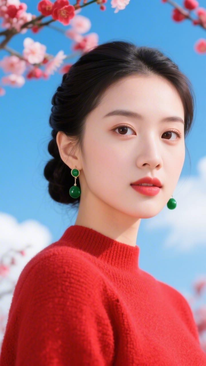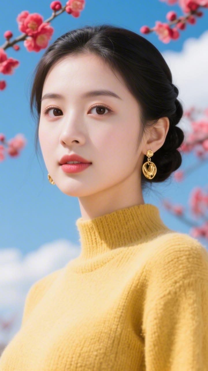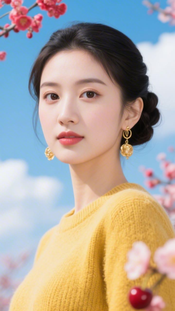 花枝拂面春风里,美人如画意中来。
