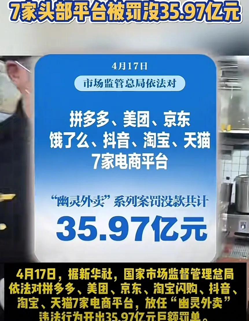 国内7大电商被罚35.97亿,幽灵外卖彻底遭到清算。就在刚刚,市监总局发布正式通