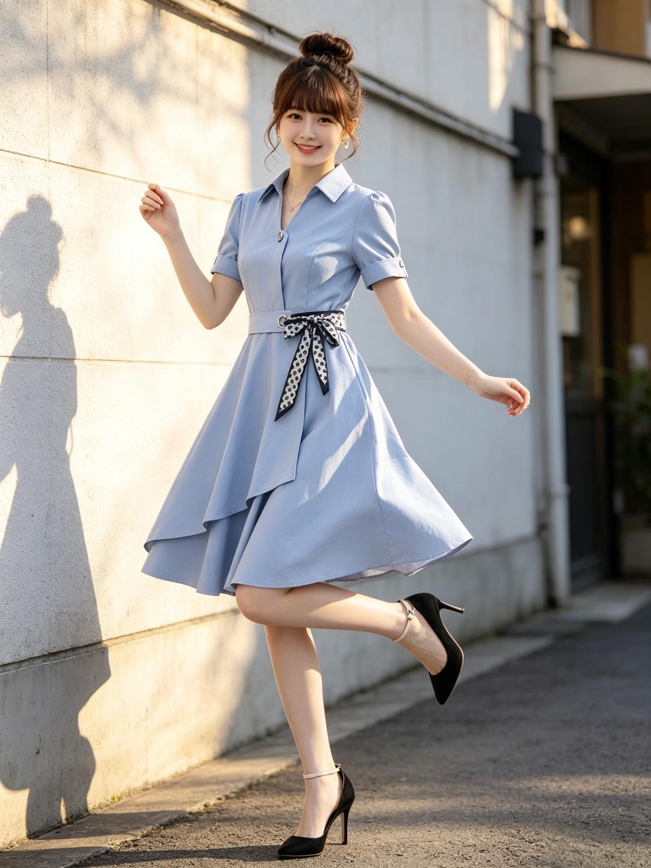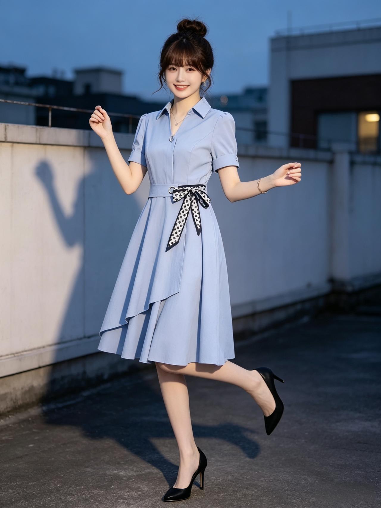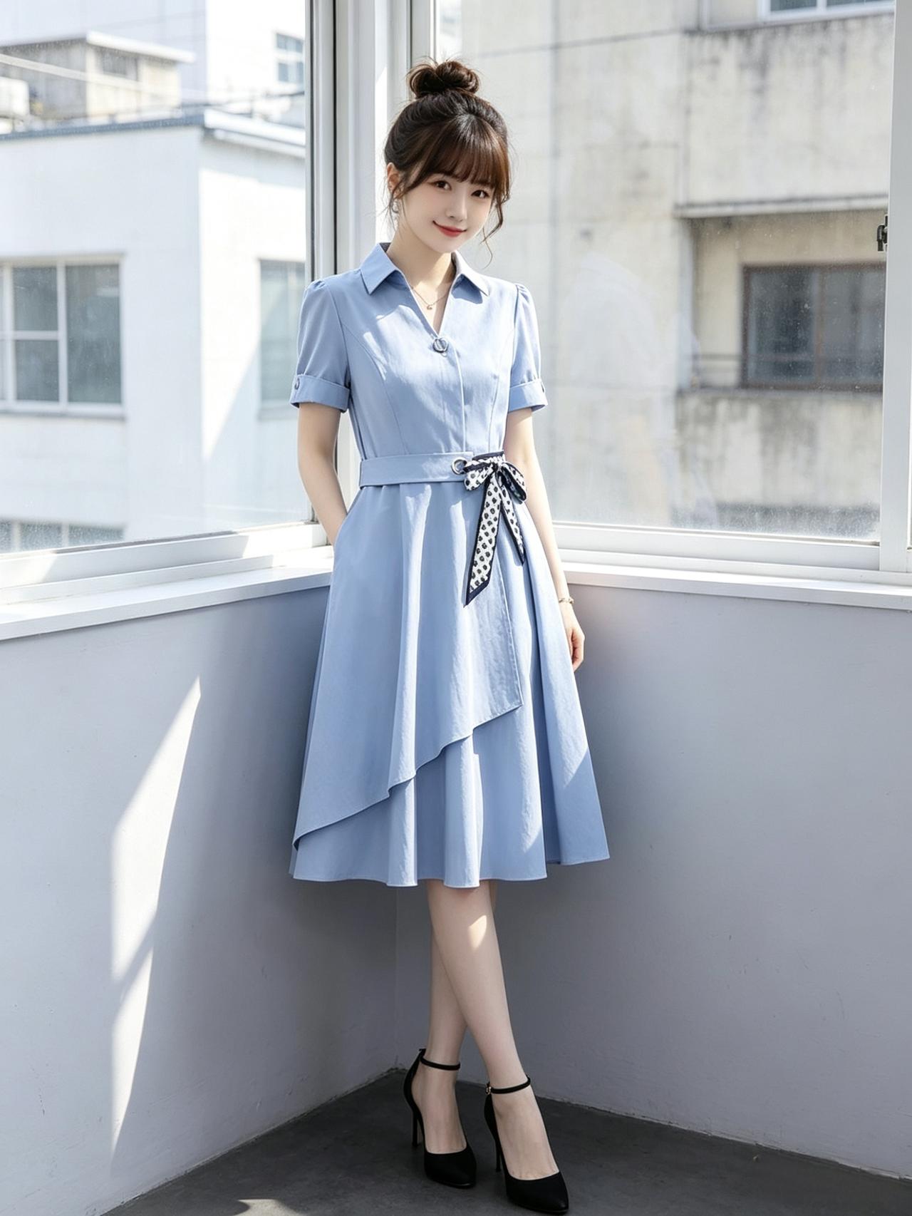 优雅蓝裙,甜美微笑,元气少女,元气满满!🌞💕有什么有气质的好看长裙推荐 知性