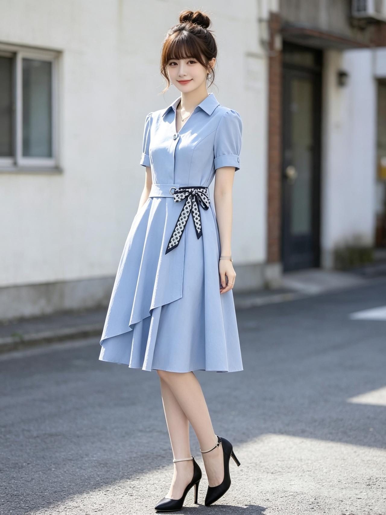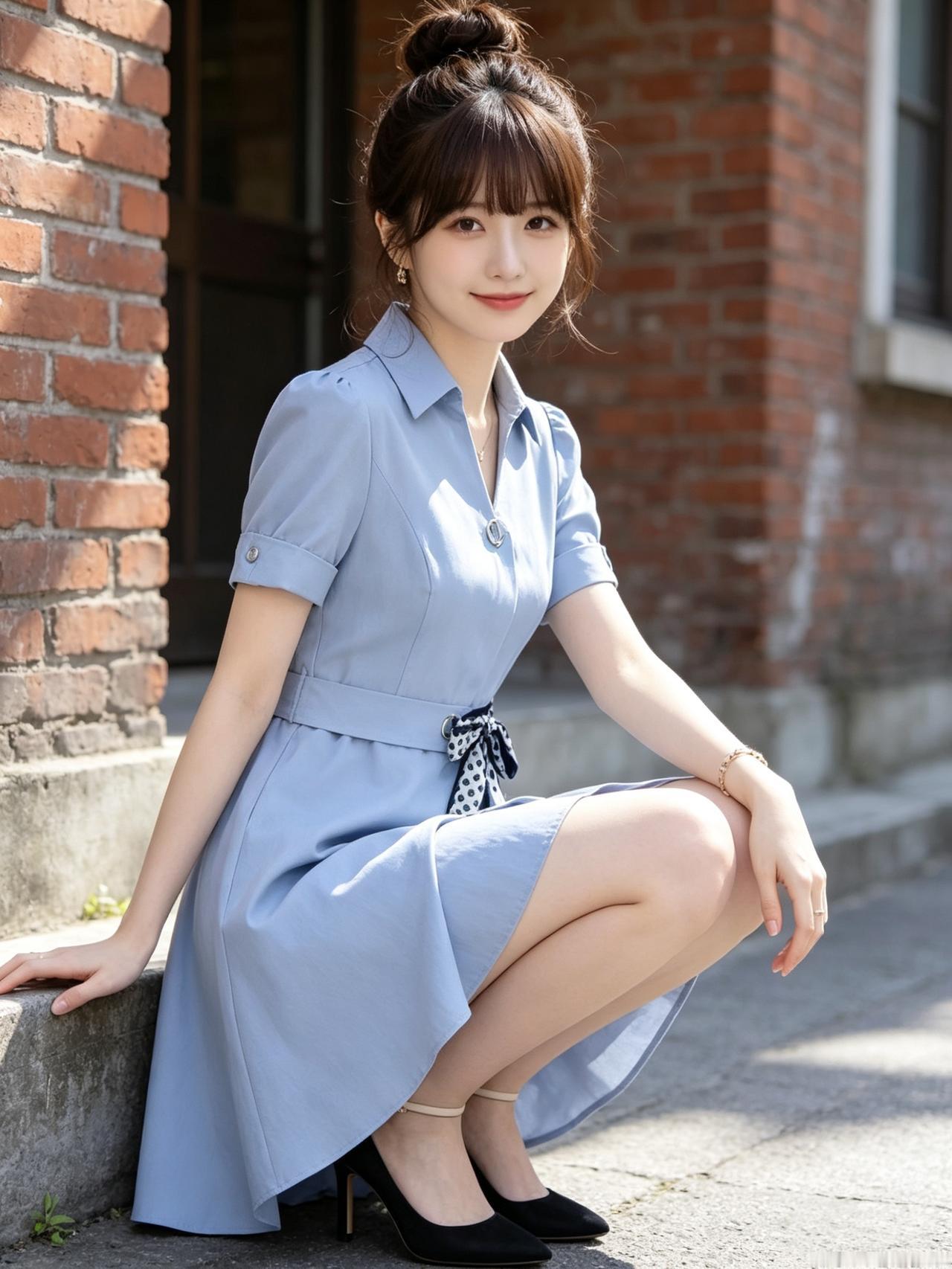 优雅蓝裙,甜美微笑,元气少女,元气满满!🌞💕有什么有气质的好看长裙推荐 知性美女穿搭分享
