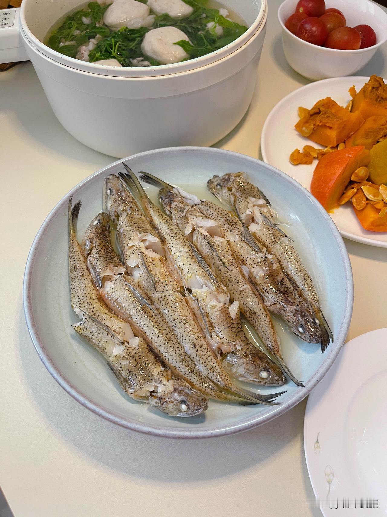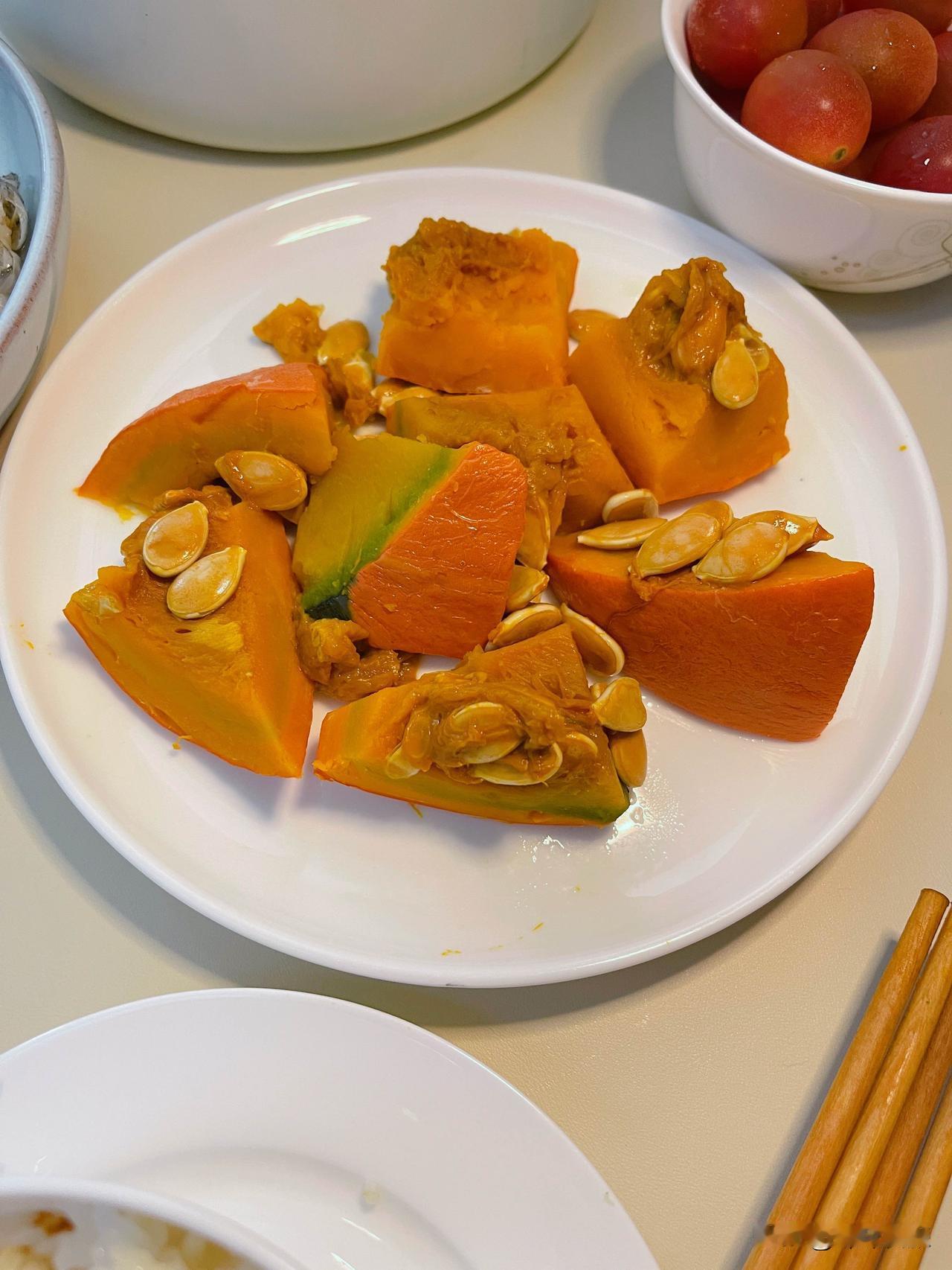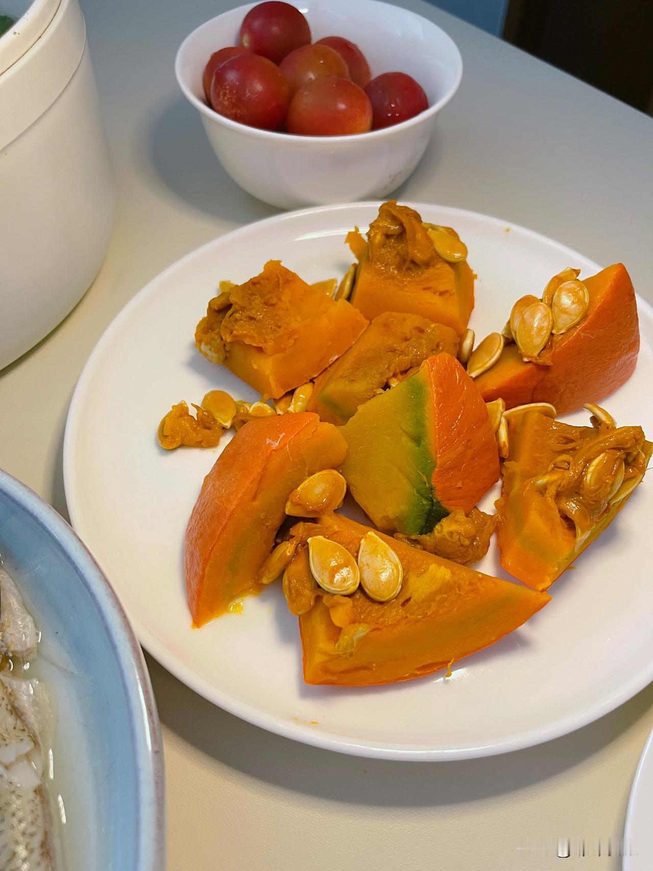 张先生喜欢的蒸南瓜又登场了,蒸一盘那个鱼饭够吃两餐。