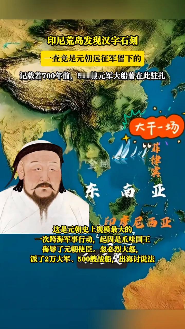 印尼荒岛发现汉字石刻,一查竟是元朝远征军留下的。 记载着700年前,500艘元军