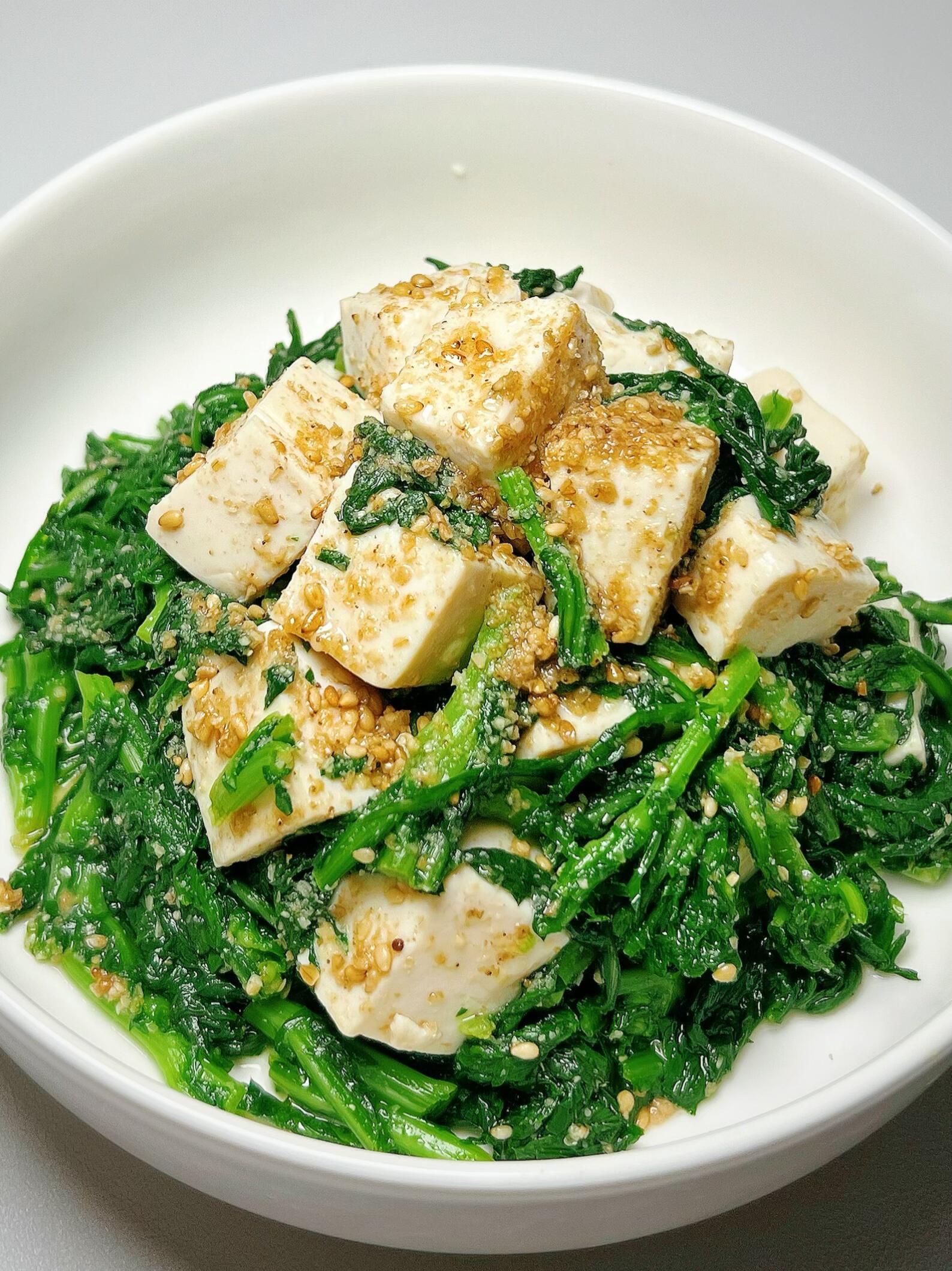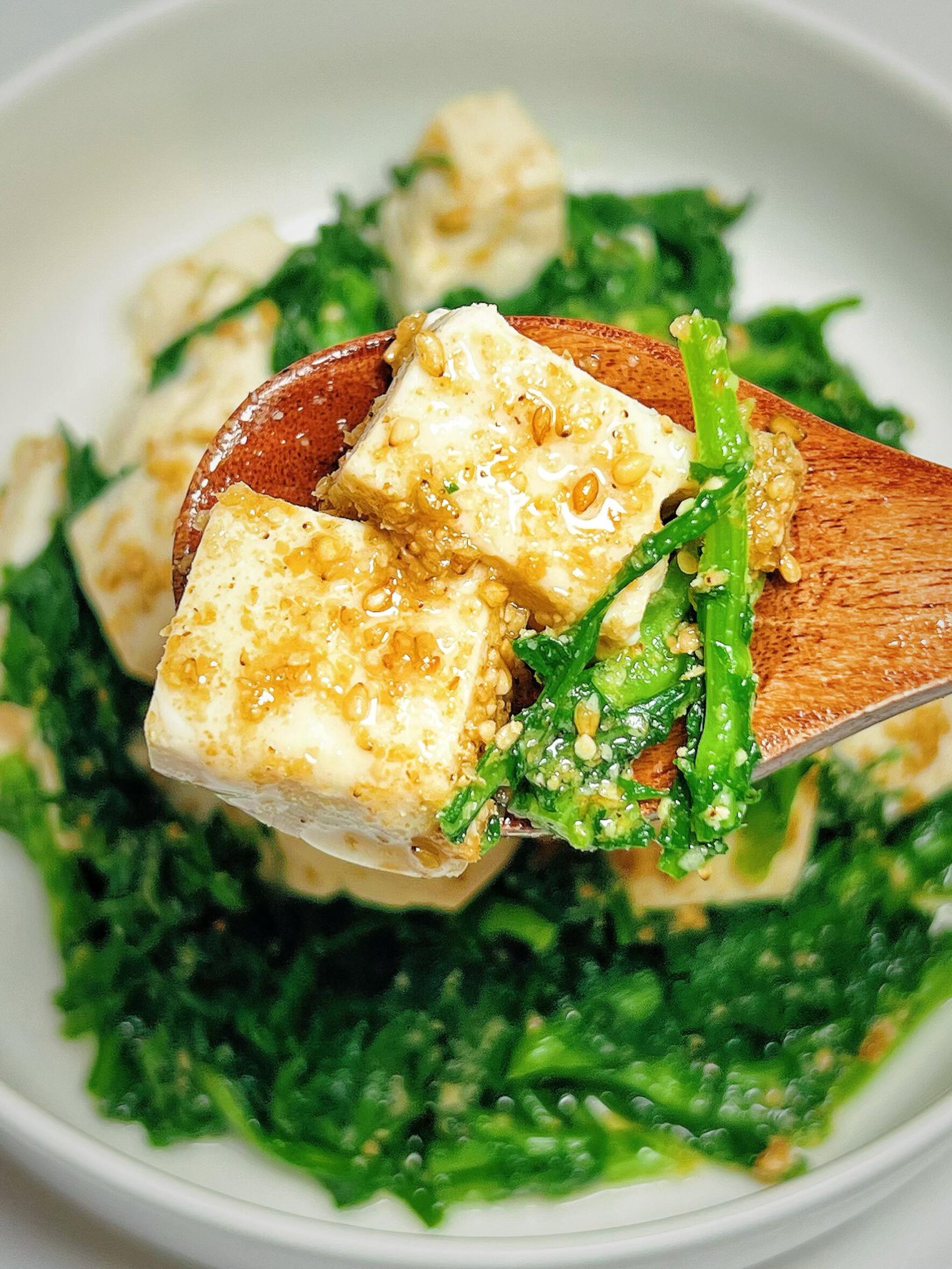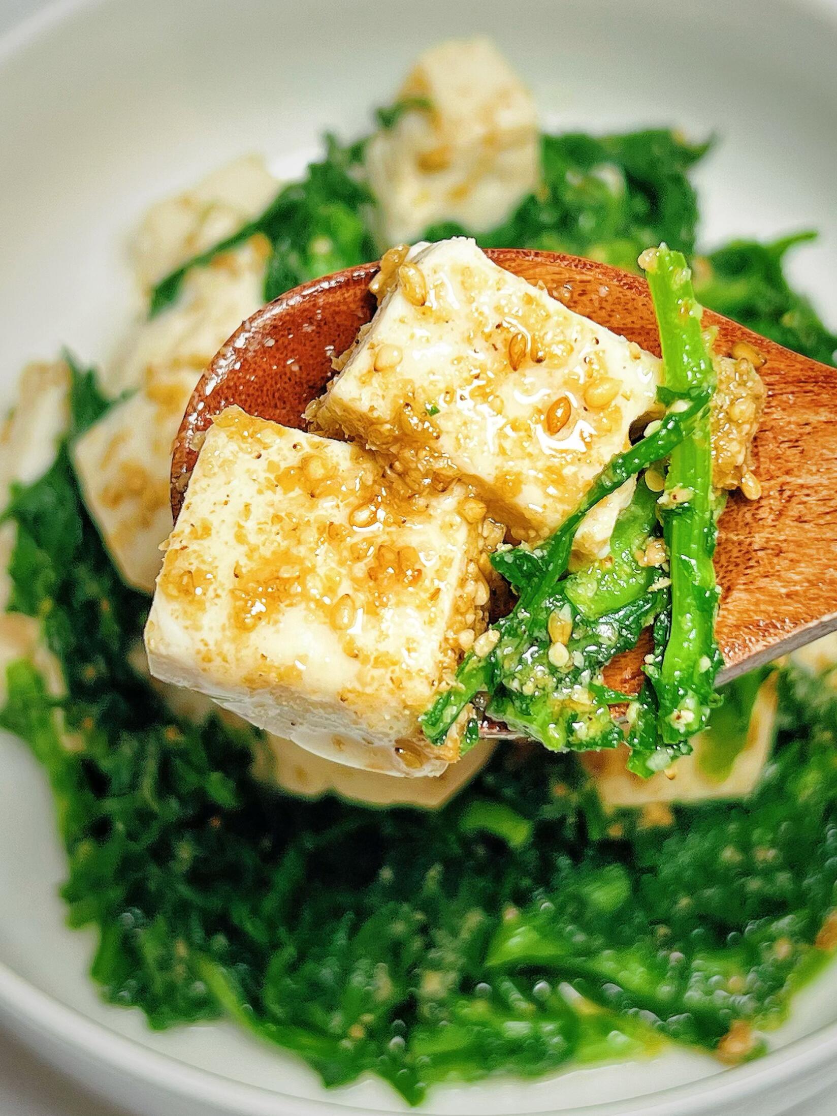 家人们!减脂期嘴馋又怕胖的,一定要试试这道茼蒿拌豆腐,直接香到舔盘还没负担✨