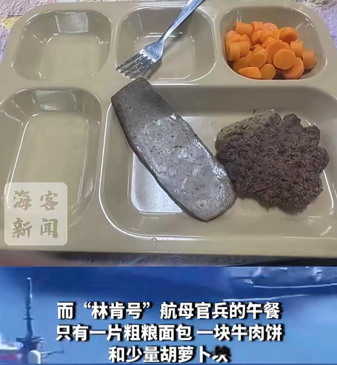 美军航母士兵吐槽食物太糟糕导致士气下降,只有一点点碎肉和玉米饼,或者加了一片午餐
