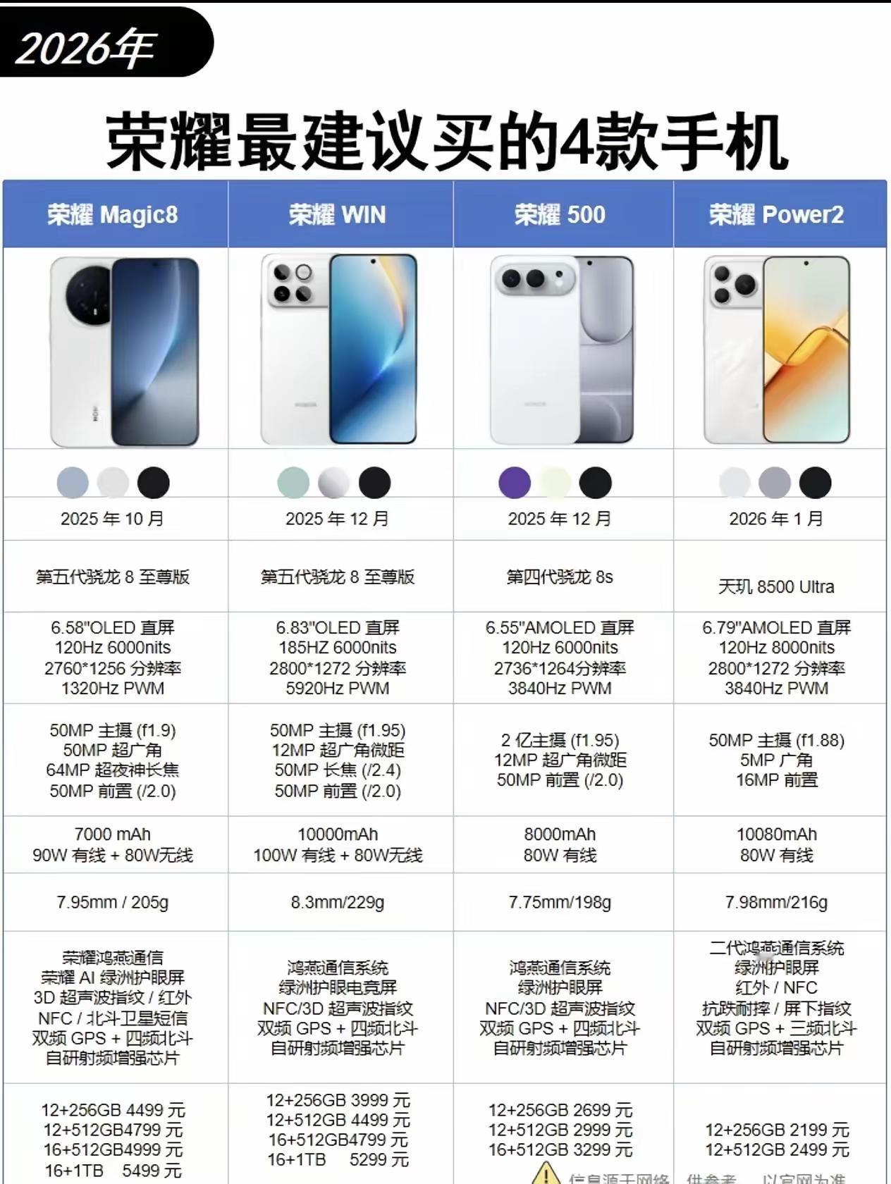 还在漫无目的地手机吗?2026年这四款荣耀手机闭眼选择都不踩坑,建议收藏!从千元到旗舰全价位覆盖,每一款都是懂用户需求的狠角色。Magic8用超大电池和旗舰芯片打透高端市场,中端荣耀500把性价比玩明白了,入门和性能款也都各有杀招;Power2和WIN则分别在入门和性能赛道交出了满分答卷。荣每一款都精准戳中了用户的真实需求,没有多余噱头,全是实打实的体验提升!
