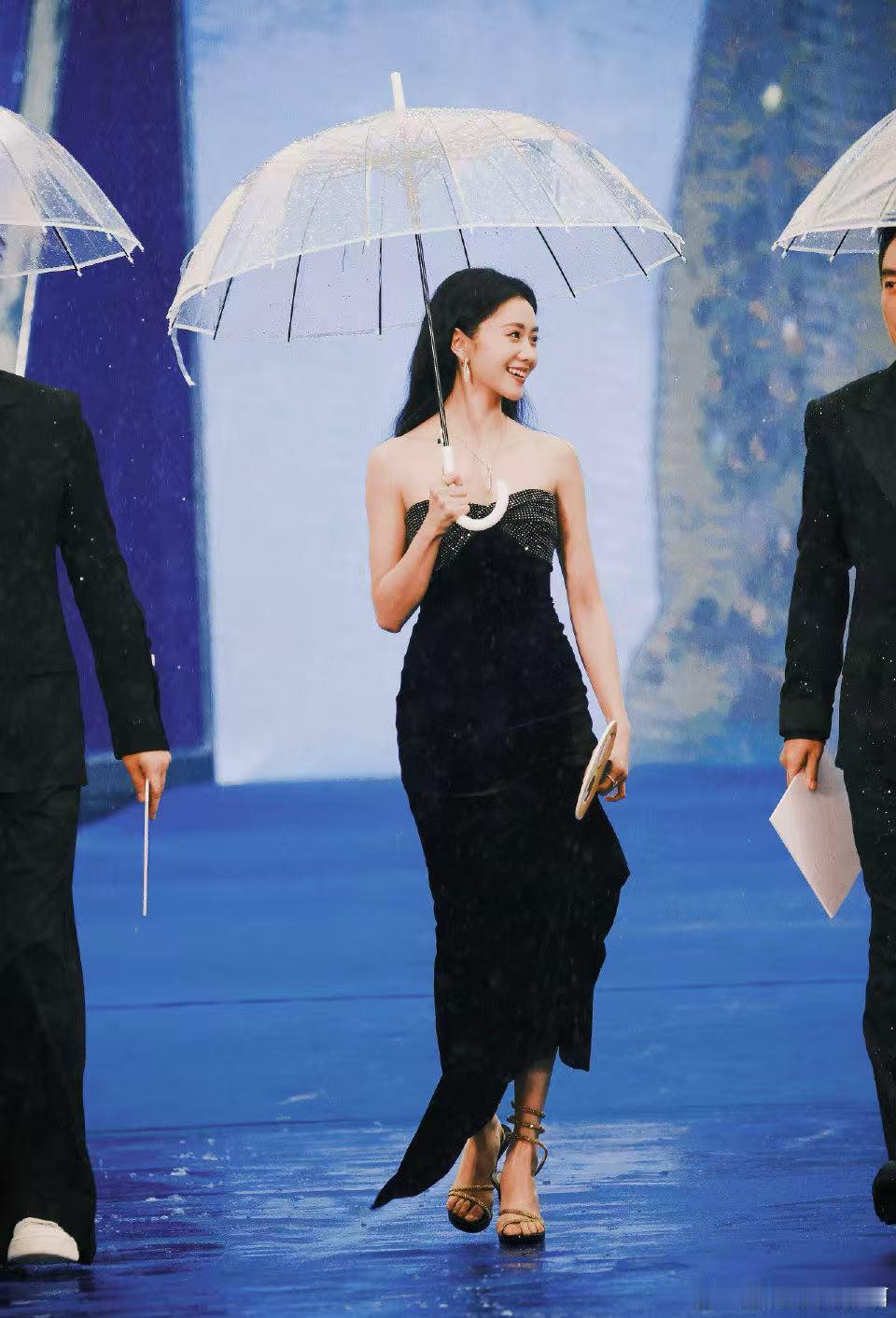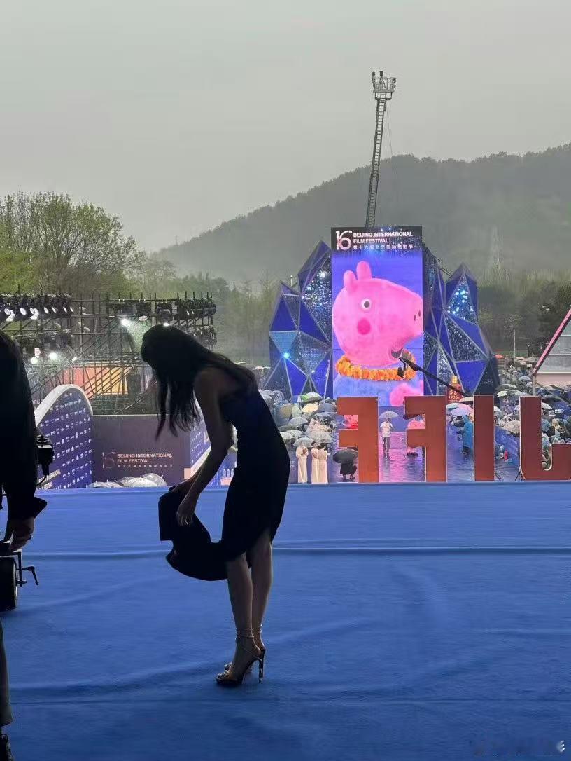 北影节主持人裙子吸雨变色意思是这身湿是裙子她穿了几个小时?这不得回家赶紧喝感冒