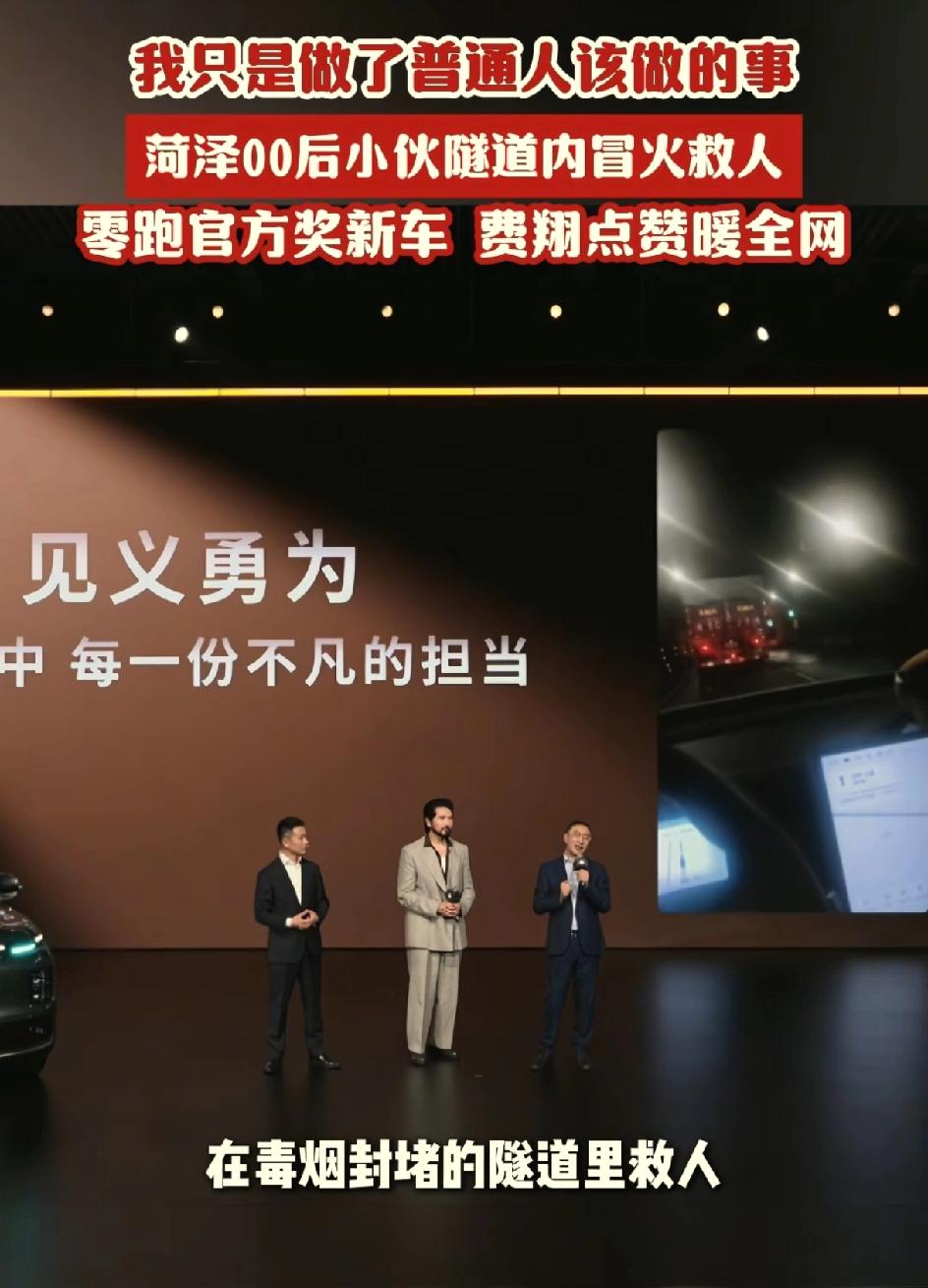 零跑汽车创始人朱江明,送给救人小伙张健一辆D19汽车。