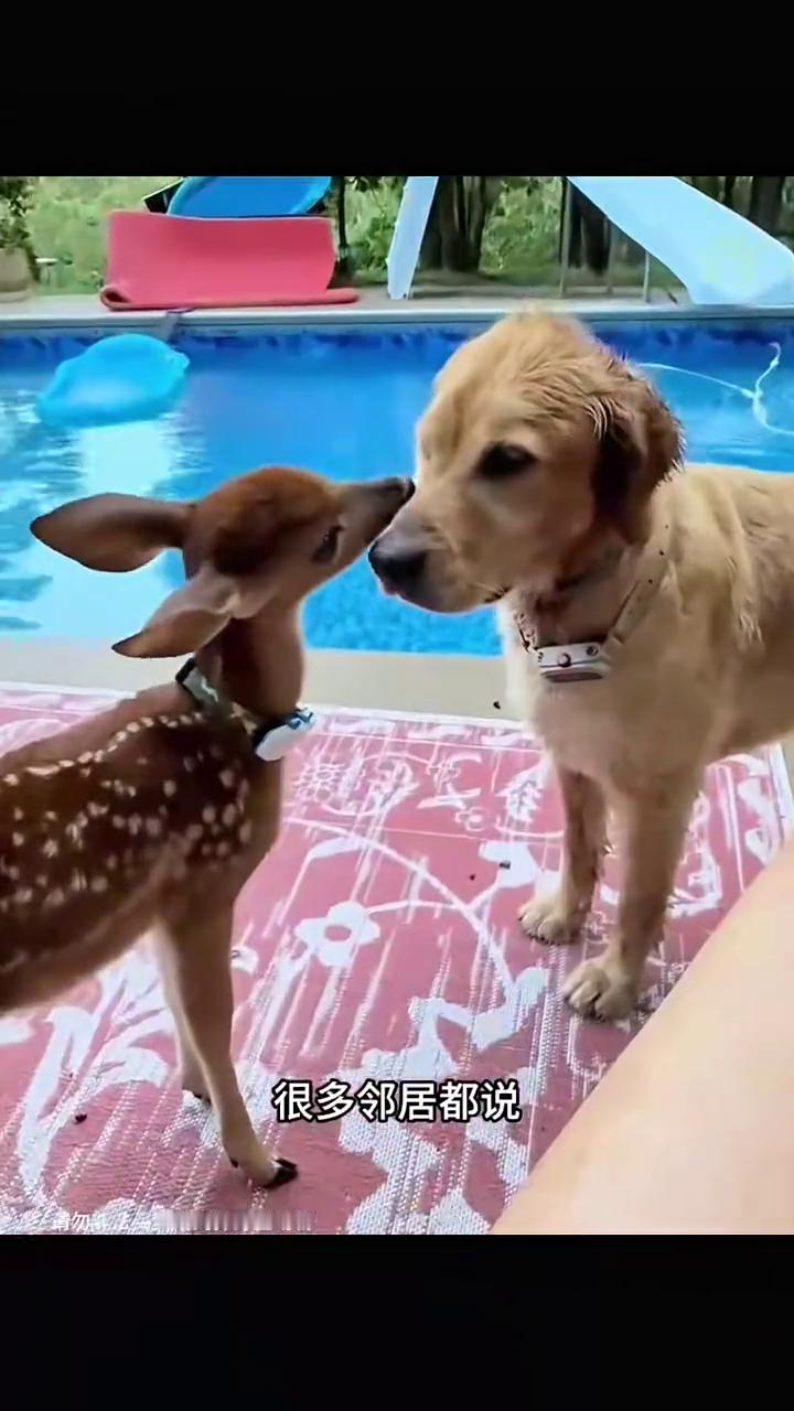 转眼小鹿就长大了很多,对狗狗的感情还是一如既往的好,每天形影不离跟在身边,就连睡觉都会躺在一个窝里。很多邻居都说,它们可能是上辈子的情人,只要将它们分开几分钟,狗狗就会趴在地上闷闷不乐。可毕竟是野生动物,最终屋主还是将小鹿送回了大自然。