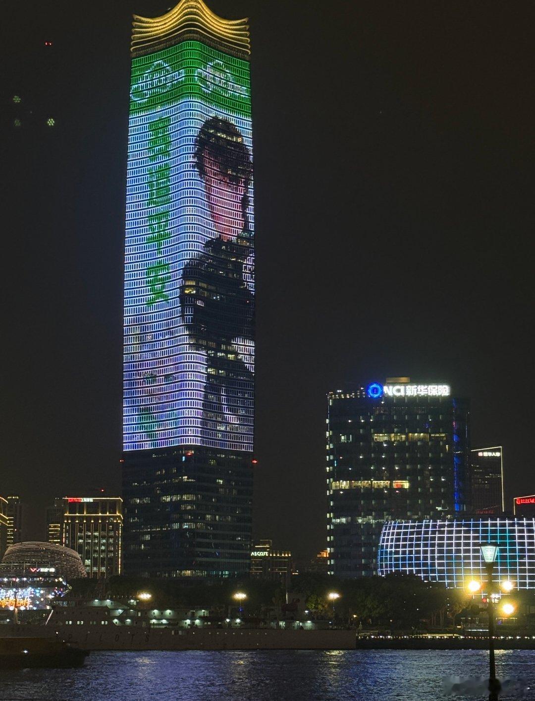 王一博上海外滩322米第一高楼的排面。小嗷潮玩祝全球代言人85赛道平安。上海真的