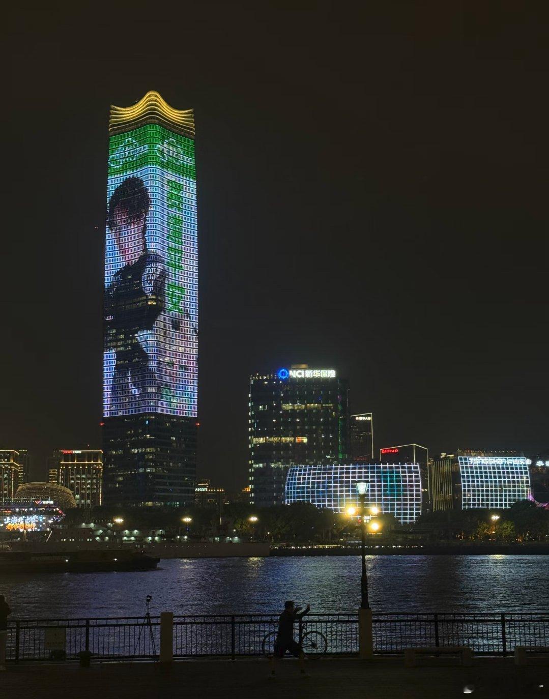 一抬头就看见王一博上海外滩偶遇王一博上海外滩的大屏,今天被王一博承包了,三个屏幕轮播,祝他赛事平安,我在手机里看截图,上海的朋友抬头就能看到超级大版