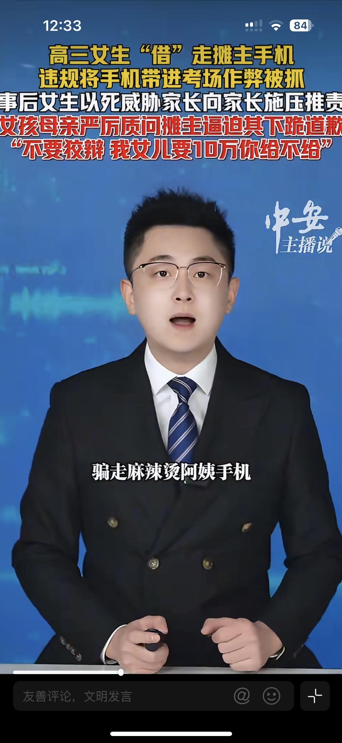 高三一位女生以打电话为由,给校门口熟悉的麻辣烫阿姨借手机说打个电话。结果却拿走了阿姨的手机去学校考试作弊,被老师发现后,却以死相逼推卸责任,而家长找到麻辣烫的阿姨问责。说如果我女儿管你要10万你也给吗?什么时候善良倒成了她们无耻的借口?逼得麻辣烫阿姨下跪道歉,她却说我受不起。