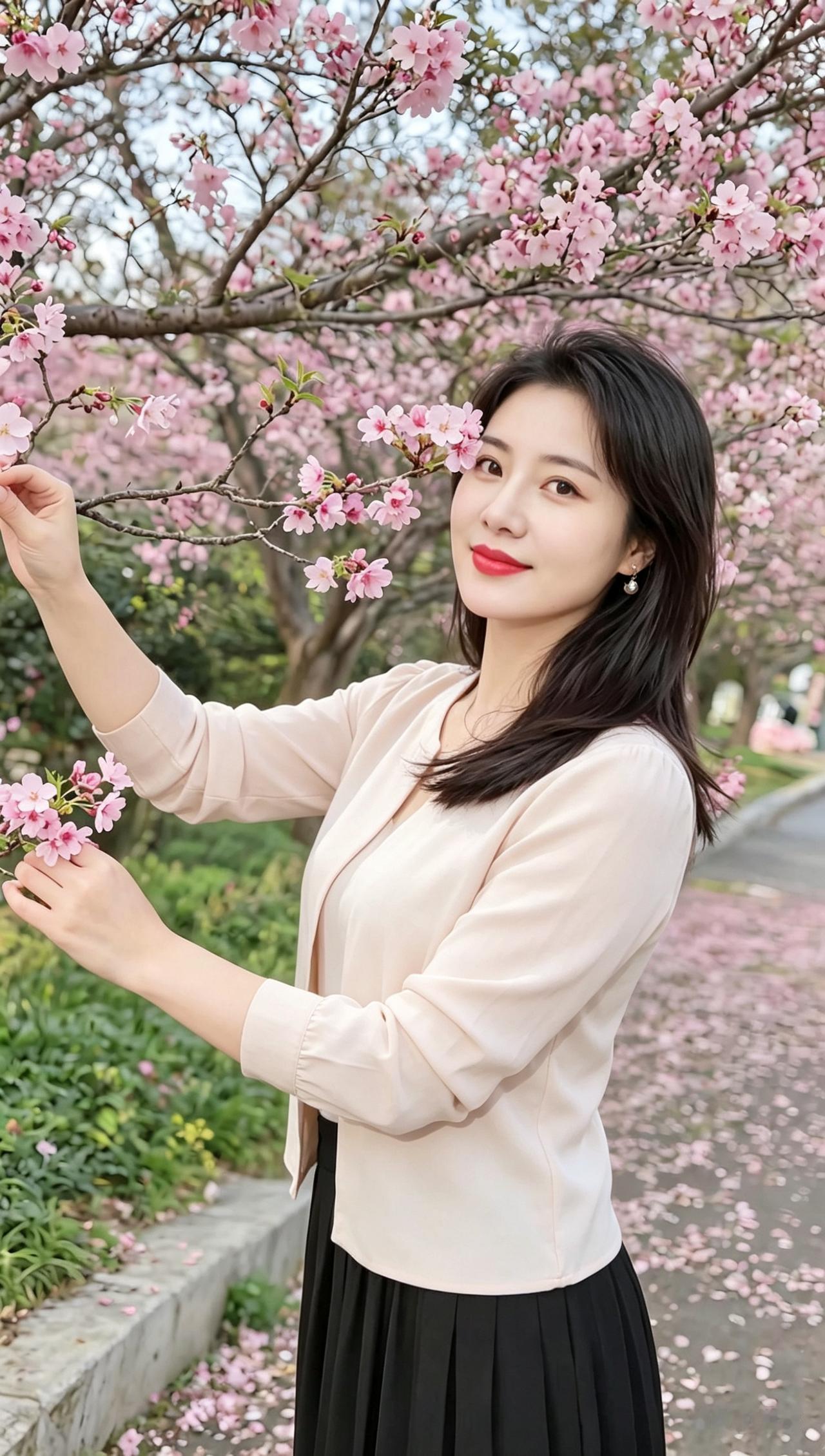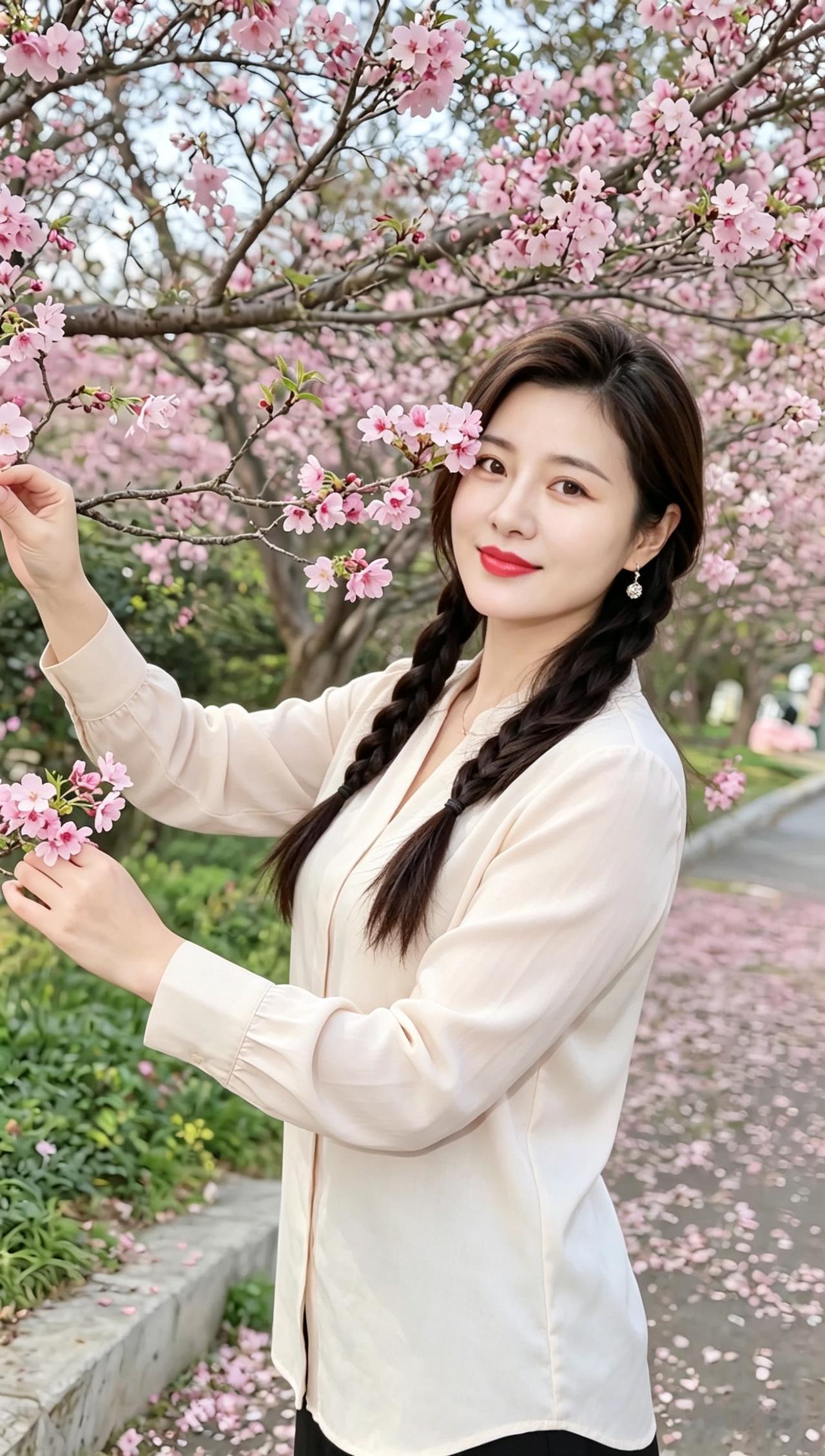 樱花树下,一袭白裙随风轻扬。春日的浪漫在此刻尽显,美得令人心醉!🌸💃🌸唯美