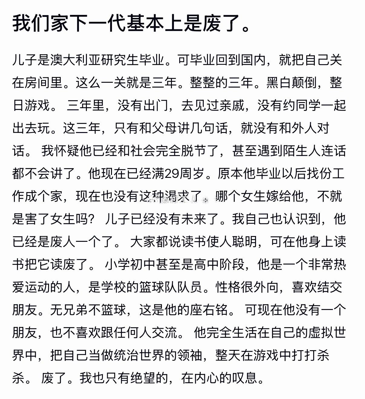 我们的下一代可能比我们更艰难我们现在觉得难,可能只是个开始。60后赶上了