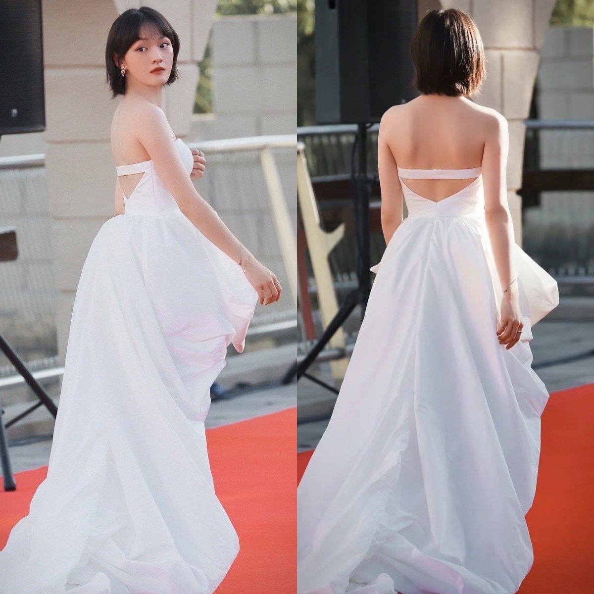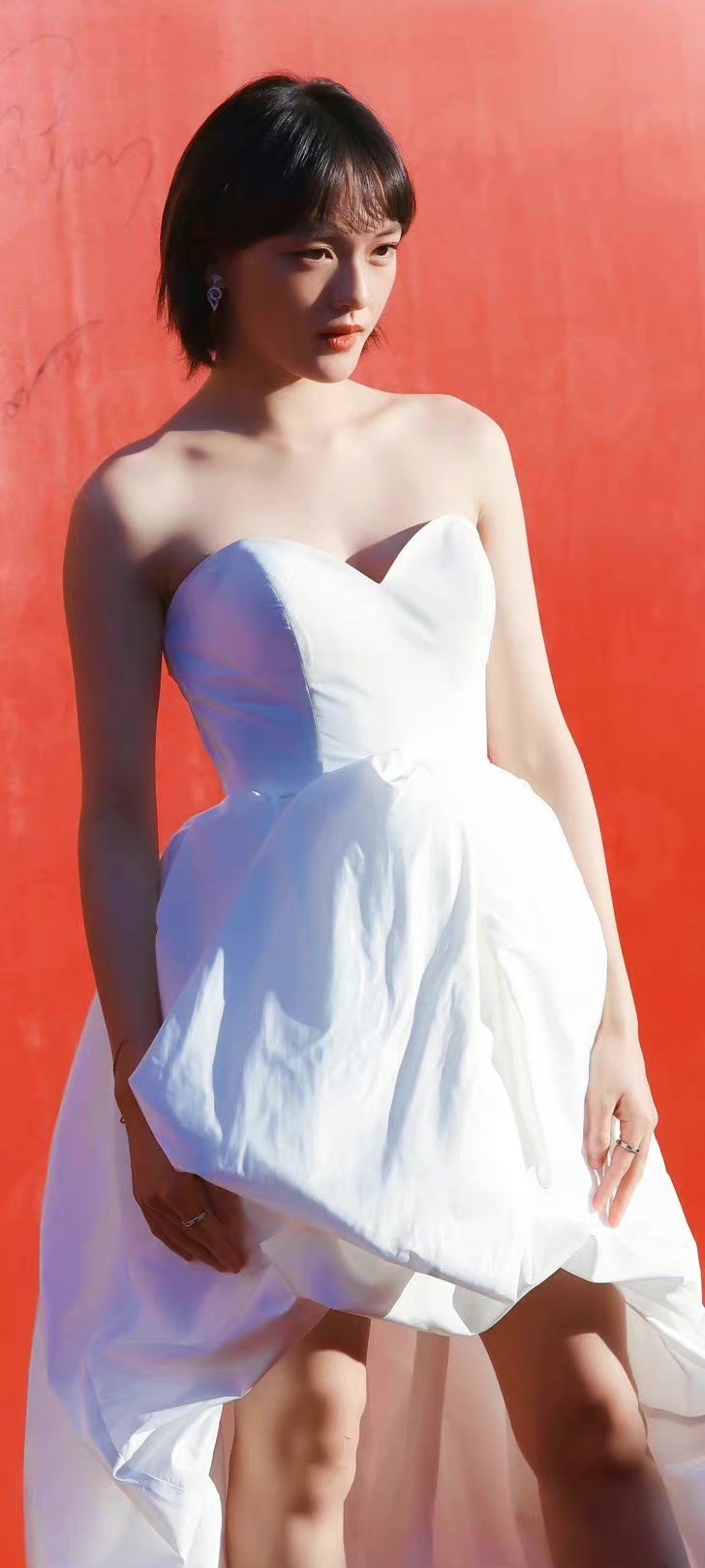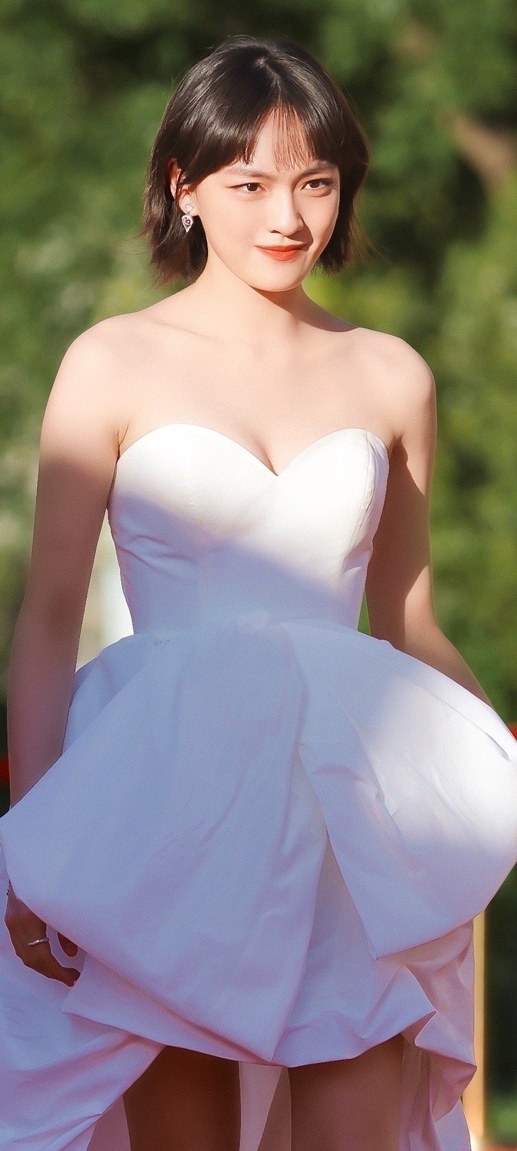 文淇红毯穿搭壁纸,白色抹胸裙。文淇