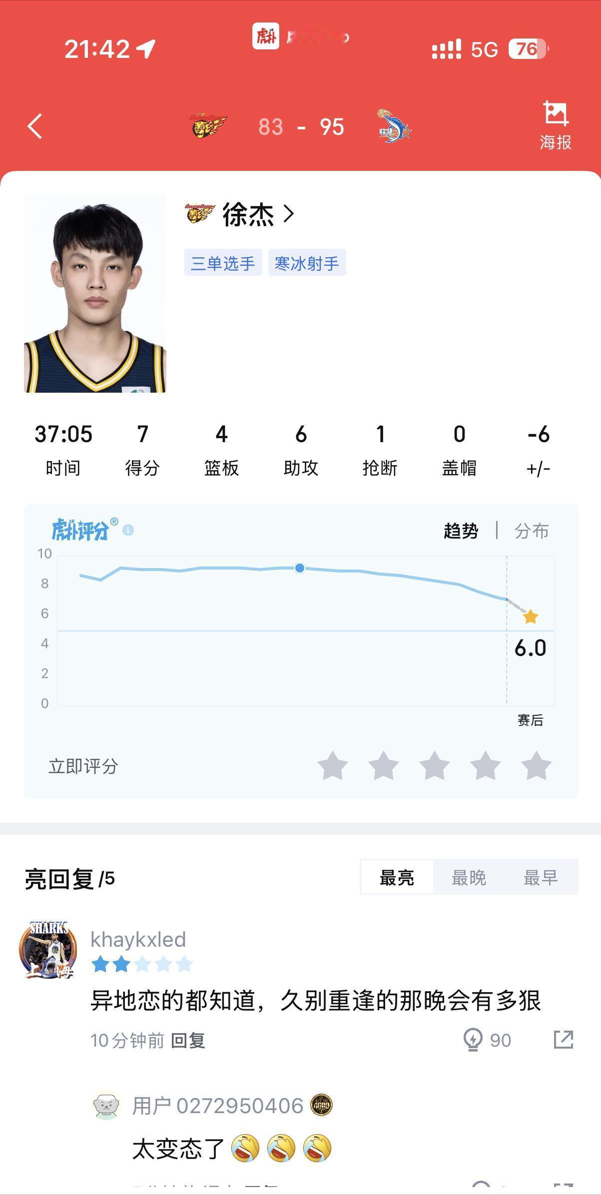 广东队球迷答谢夜!却在主场爆冷翻车,惨遭福建队的19分大逆转,球队的前四名拱手让给了北京队。想不到这样的球迷答谢夜却送给了球迷这样一场比赛,球员斗志全无,给球迷喂屎,还好意思卖那么贵的门票,看来现在的广东队也就只剩下11冠王这样的名头了。恕我直言,本赛季的季后赛广东队又是一轮游,立贴为证!