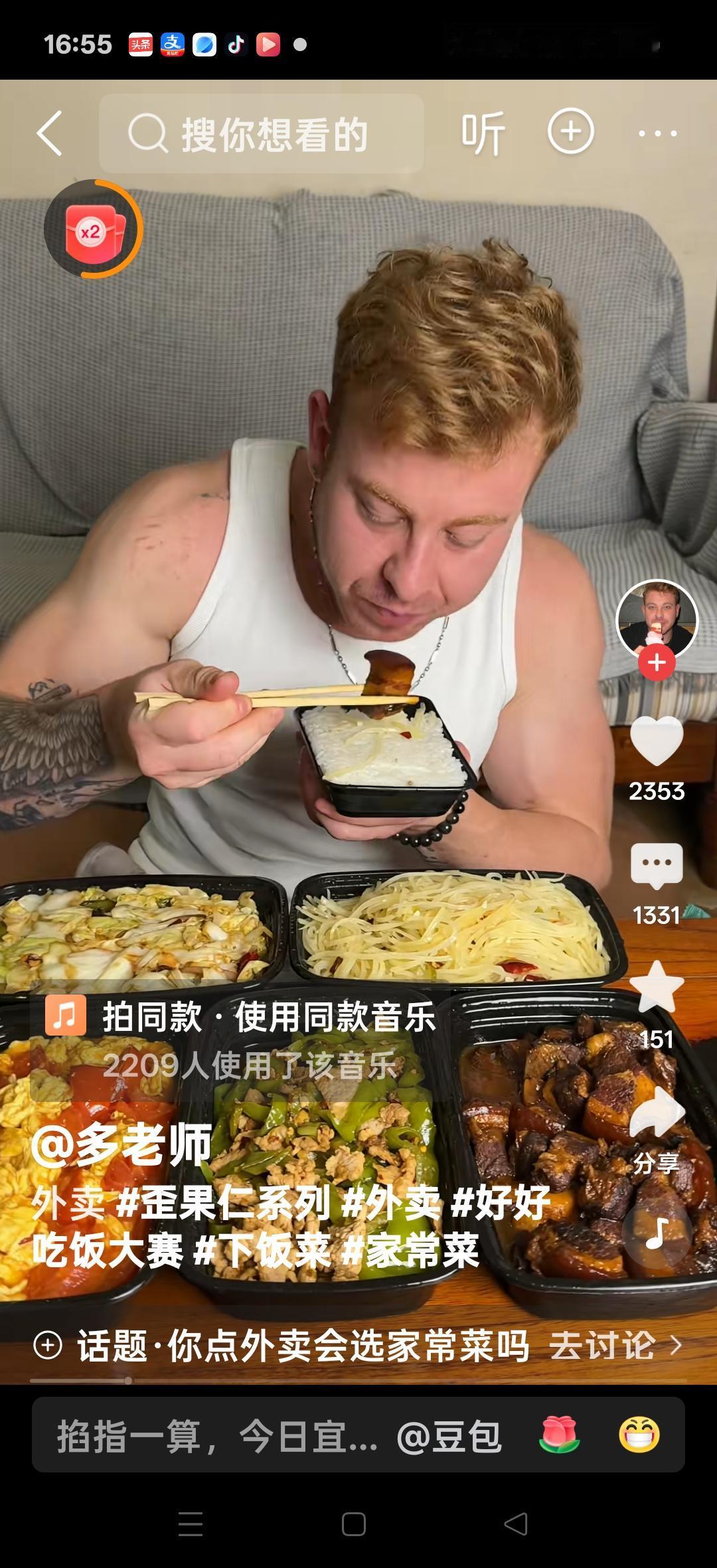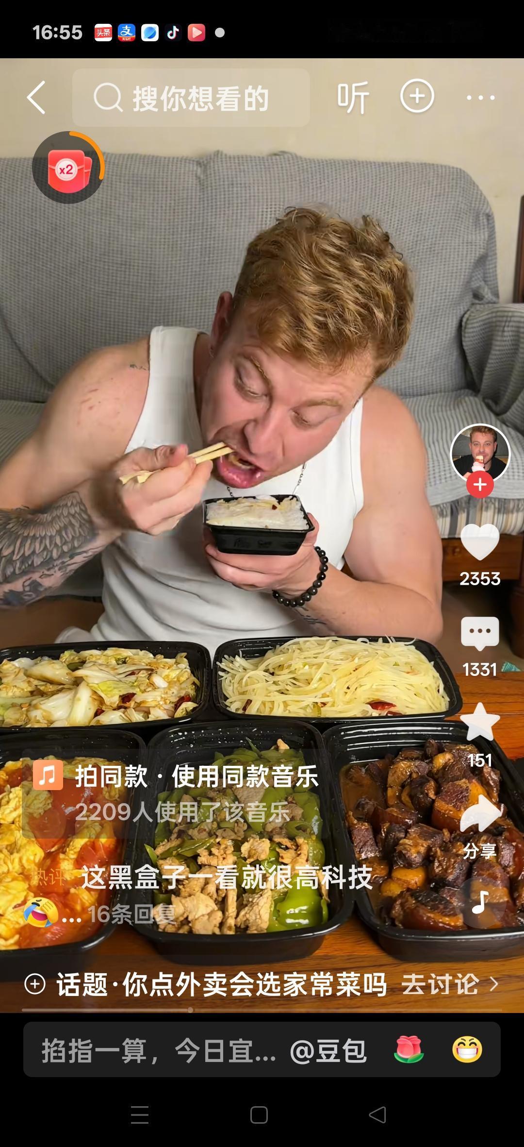 外国人吃外卖。网友说:中国菜不说是最好吃的,但也基本上没有哪国菜比我们的好吃,个