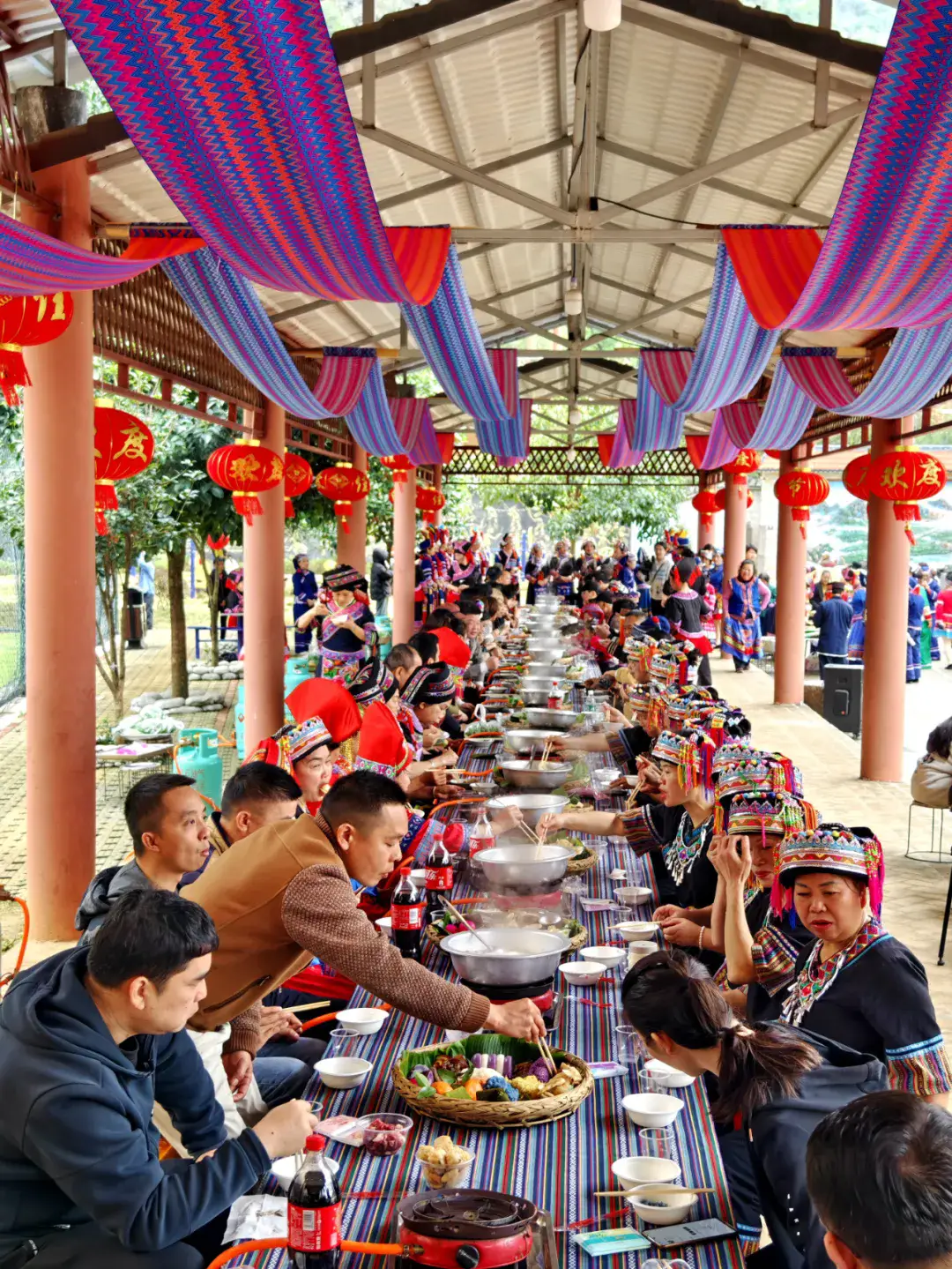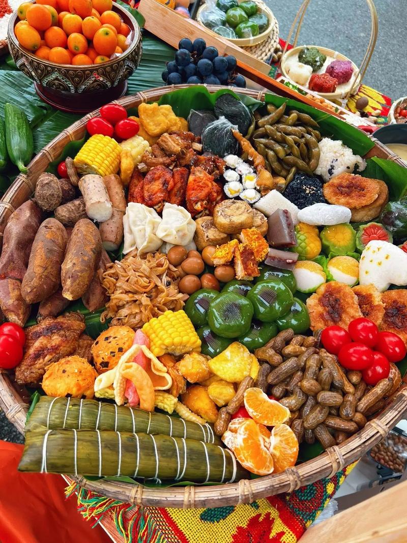 5️⃣.民族长桌宴,簸箕饭、烤猪肉、春季的野菜等都值得吃