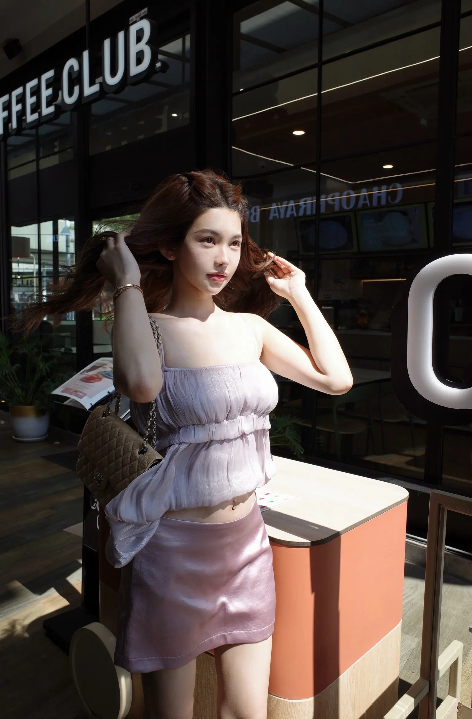 踏莎行·橙衣高髻堆云,橙衣映日,蓝钻坠耳添清致。腕间金表衬明眸,唇间一点朱