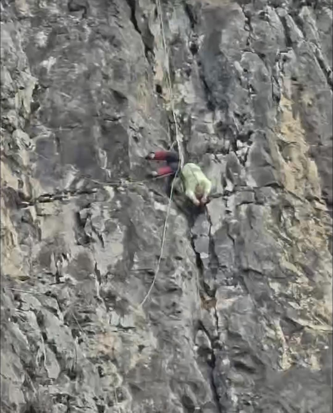 #男子攀岩倒挂悬崖血流不止昏迷#【男子在云南大黑山攀岩受伤倒挂悬崖血流不止,路过的一群徒步大学生和消防接力施救】近日,一名男子在云南玉溪澄江市路居镇红石岩村附近的大黑山攀岩下降时,绳索卡入岩缝发生冲坠与摆荡,身体两次撞击岩壁导致头部等处受伤,倒挂悬崖血流不止,陷入昏迷状态。途经事发地附近的玉溪师范学院赵海呈等五名大学生临危不乱实施救援,先将伤者降至安全平台,后来又协助消防转移伤者。