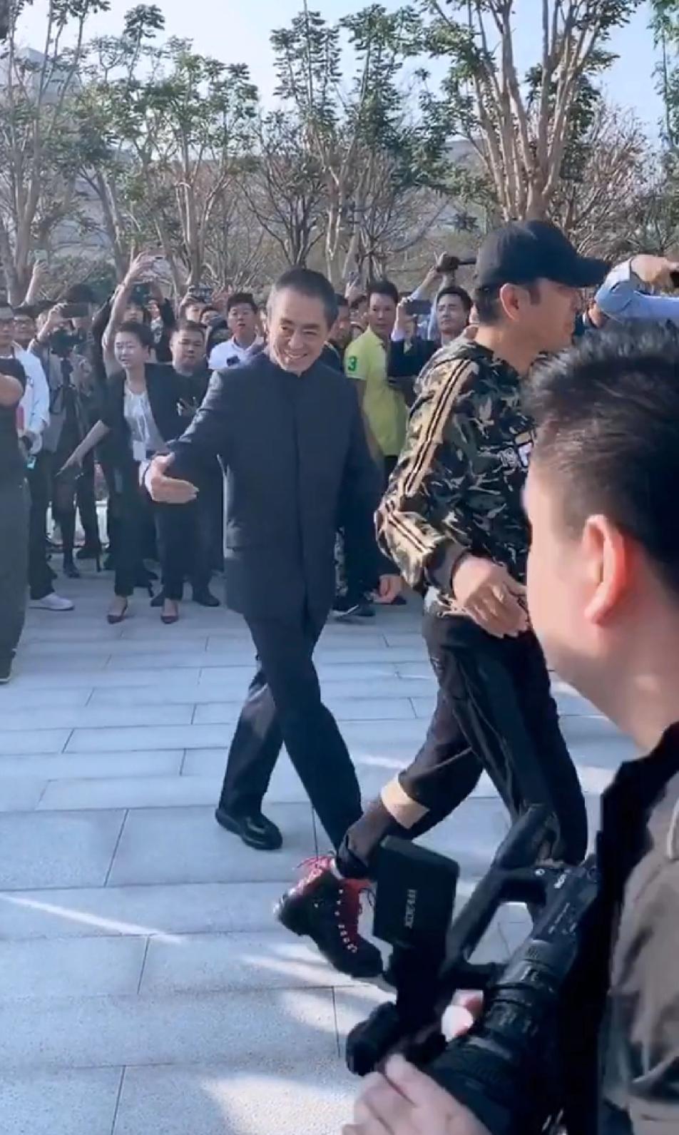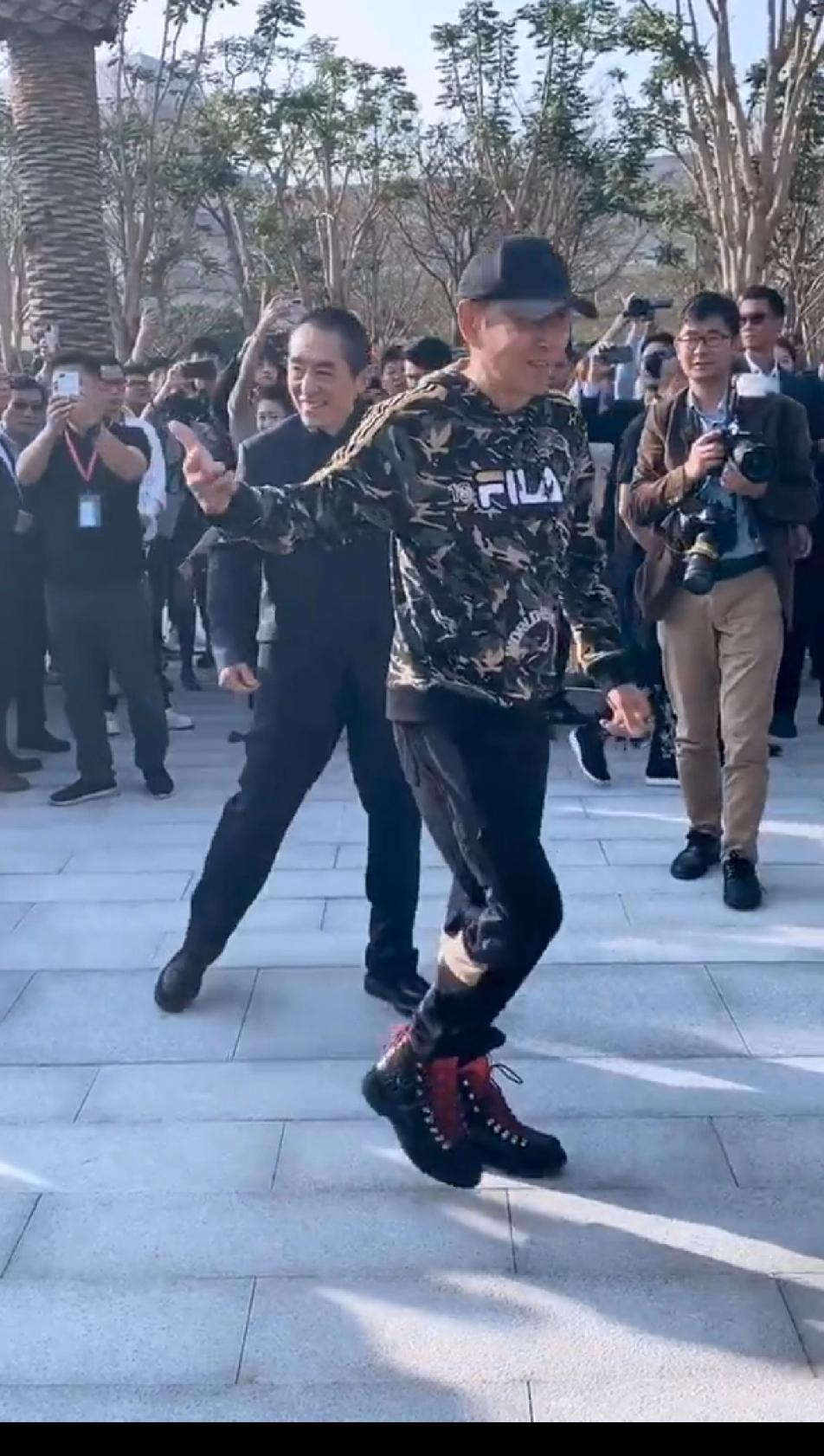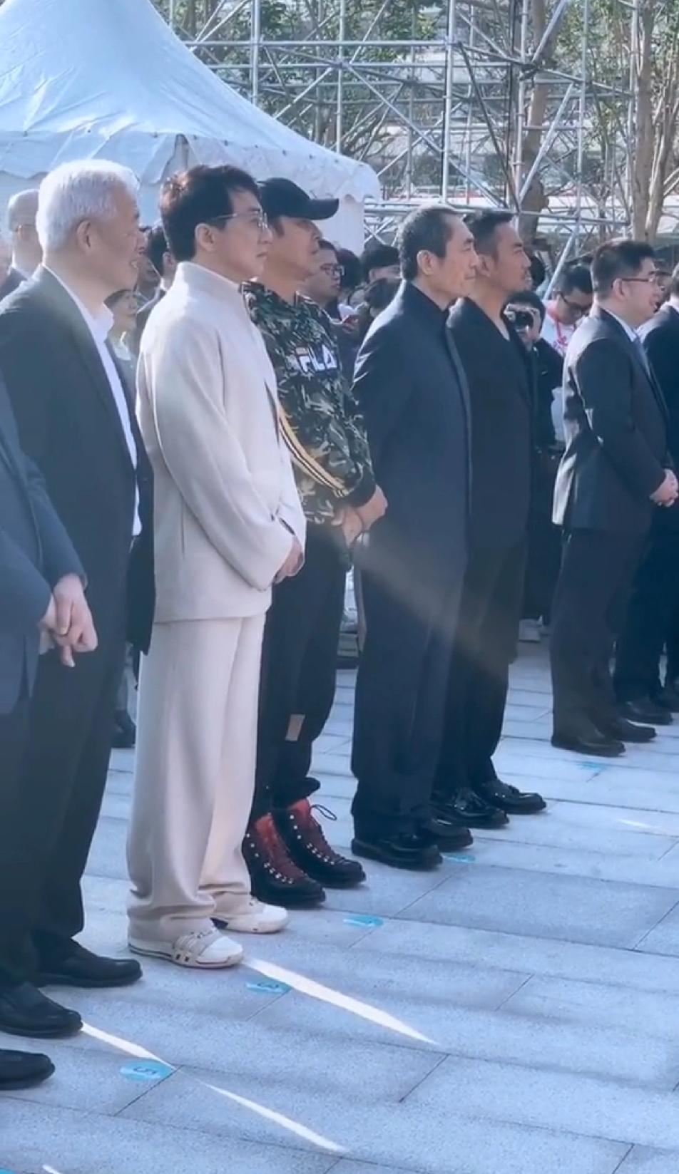 就喜欢陈道明这个劲儿,哥几个都是西装正装,那陈叔就得整点不一样的,棒球帽,五颜六色的套头衫,设计感很强的运动裤夹在红黑搭配的高帮鞋里,这一身在一帮老哥们中间绝对炸,往那儿一站,看起来倍儿年轻,倍儿精神,甭管叔配的好不好看,叔有这心气儿就棒棒哒!