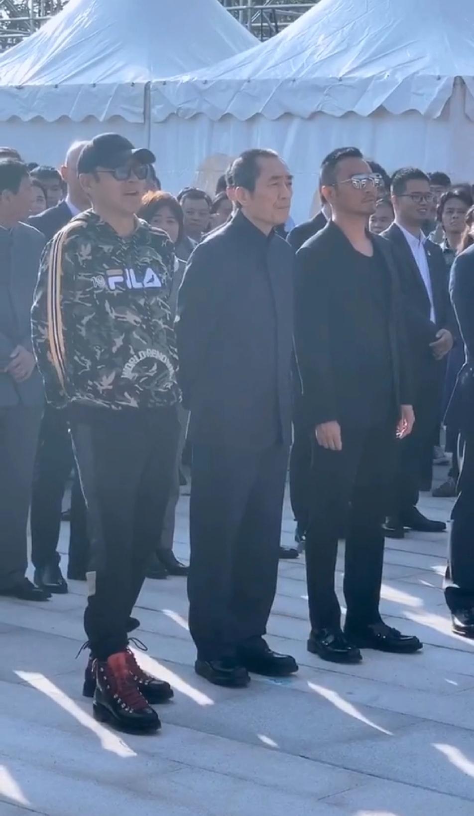 就喜欢陈道明这个劲儿,哥几个都是西装正装,那陈叔就得整点不一样的,棒球帽,五颜六
