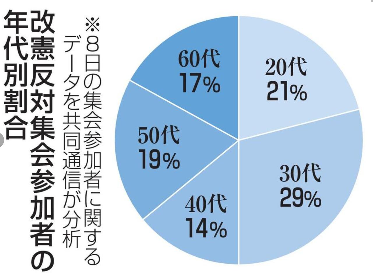 【日本3.6万人参加国会前反对修宪集会,20多岁和30多岁人群参加相关活动比例达到半数令人吃惊,96岁老人家参加理由......】4月19日,综合朝日新闻、共同通信等多家日媒报道——当日在日本东京的国会前和大阪等全国各地举行了反对修改宪法第9条等的集会游行。据主办市民团体“不要发动战争,不要破坏第九条!总动员行动实行委员会”和“不修改宪法第九条!全国市民行动”表示,自2015年安倍内阁强推安保相关法后,该团体每月19日都会举行呼吁废除该法和反对修宪的集会。此次的国会前示威活动以“NO WAR !不要修改宪法! 4·19国会正门前大行动”为题,主办方估算当天国会前抗议集会约有3.6万人,当日大阪等地还举办了各种形式的反对集会。据悉,参加者们手持标语牌,高呼“反对战争”、“高市政权遵守宪法”等口号。现场还出现了高举象征宪法第9条的数字“9”的情景。一位第一次参加示威集会、东京都内居住的52岁的女性带着上小学2年级的7岁的儿子参加。其针对高市内阁推进修改宪法和解禁武器出口的动向指出,“(国家)会不会参与战争的不安正在增加......长期以来日本所珍视的和平宪法正在消失。希望通过参加来表示反对的意思。”当天是星期天,聚集的民众明显较多。