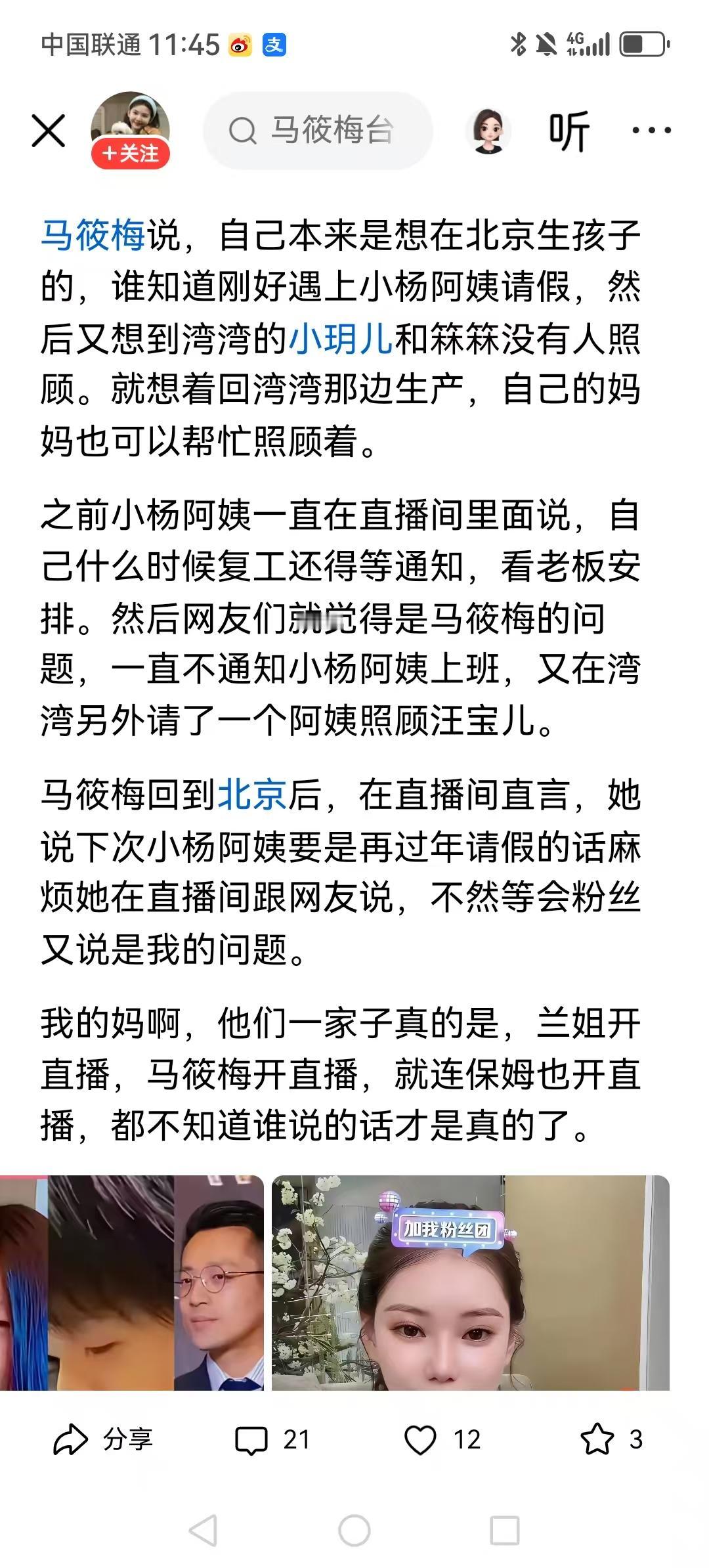 这个说完那个说,就不知道哪个真哪个假,本来过年让杨阿姨休假是为她好,谁想到预产期提前。
