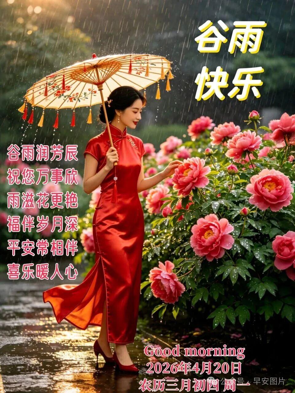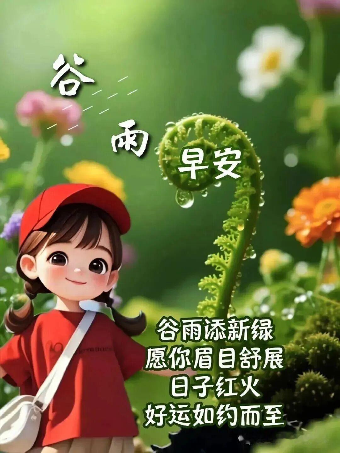 谷雨到,短信送;雨茫茫,送问候;情深深,雨绵绵;许心愿,情诚诚;送祝福,