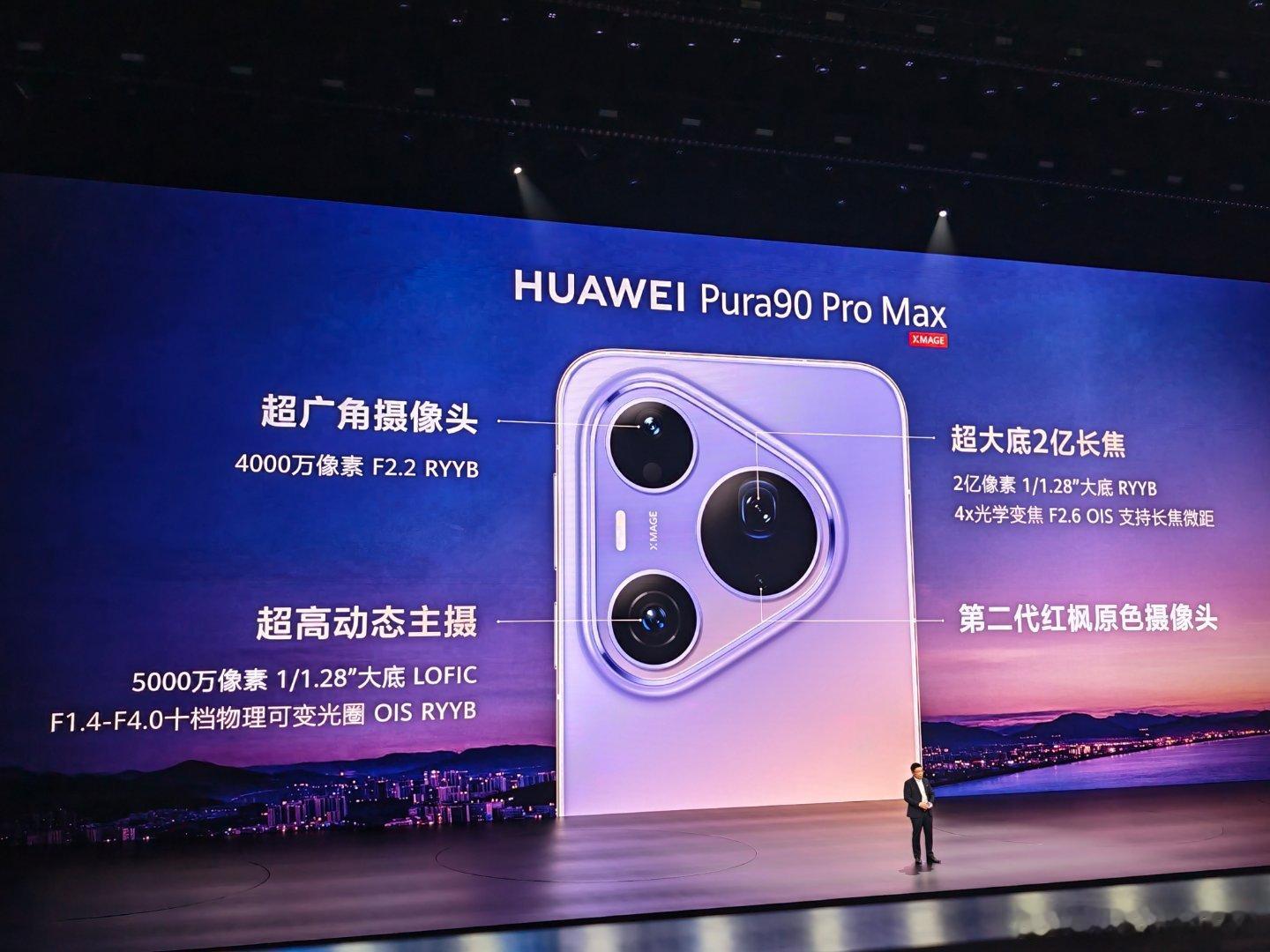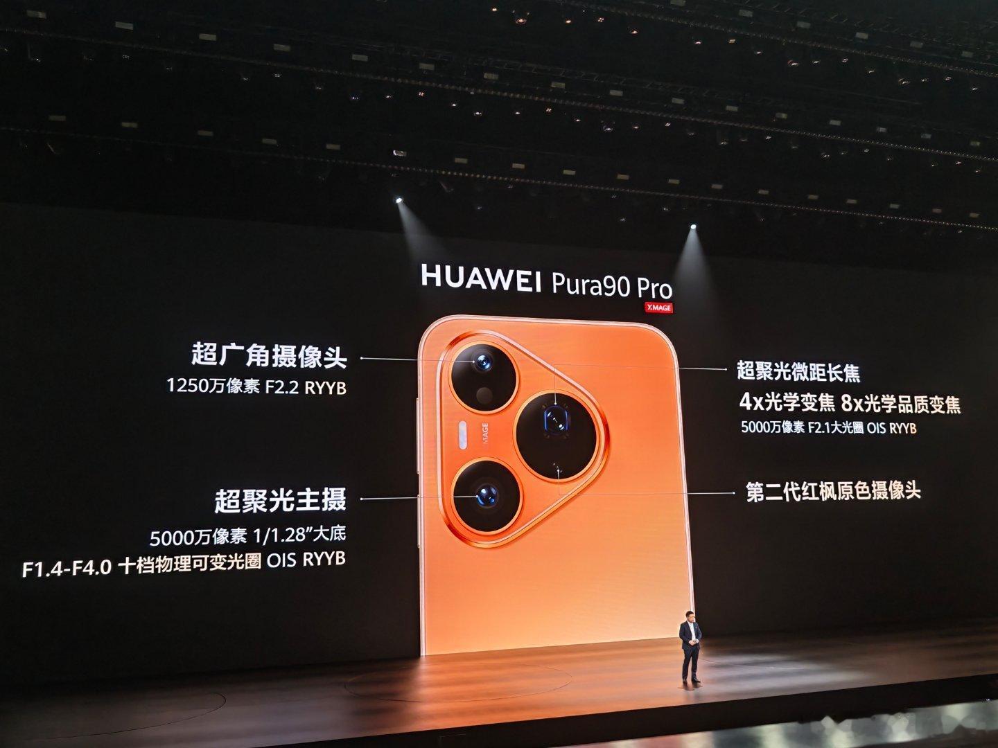 华为Pura90 Pro Max采用了三颗镜头,一颗5000万像素,4000万像素的超广角镜头,同时,一颗RYYB的2亿像素的镜头,支持了四倍光学变焦。