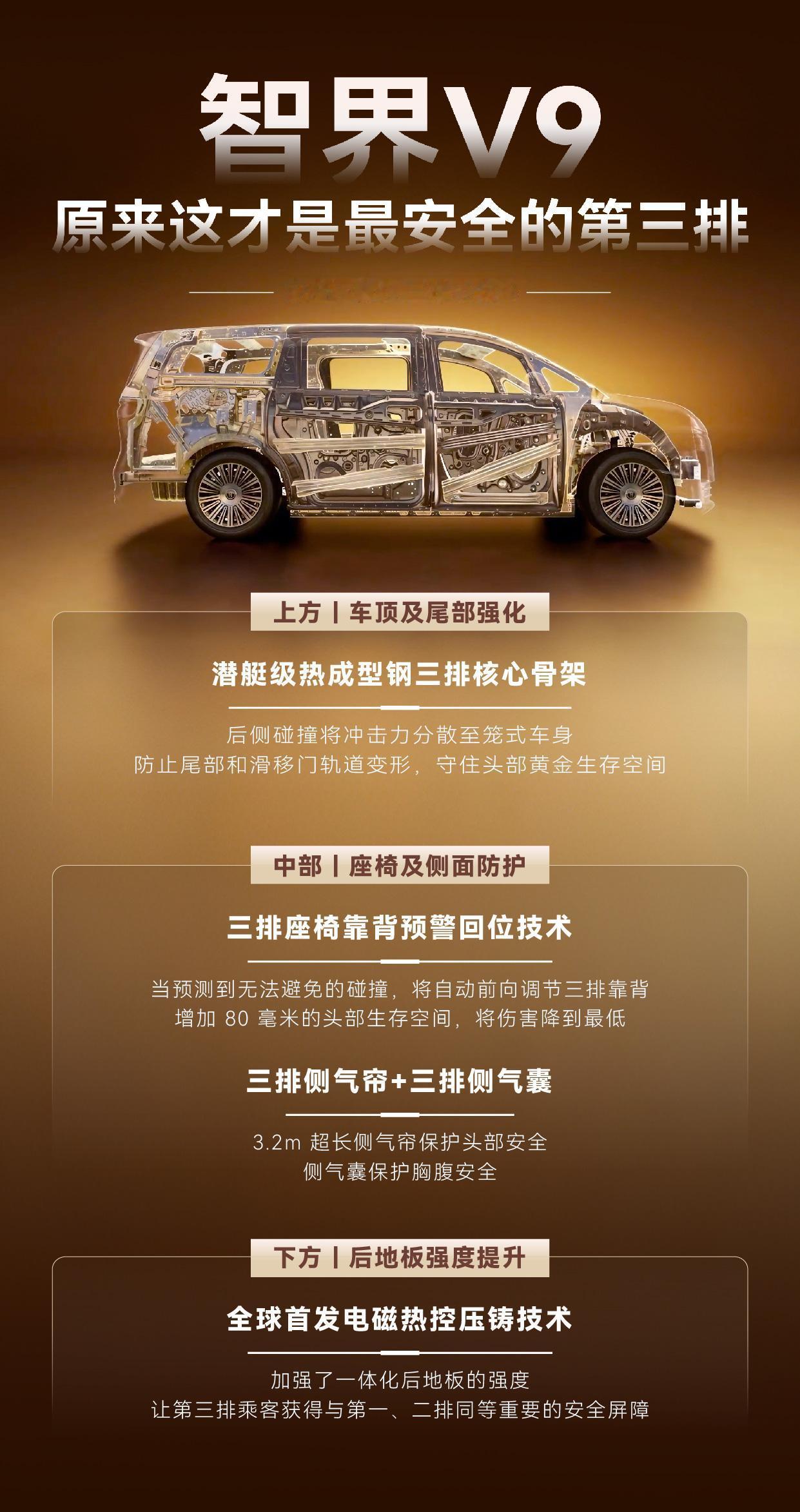 今天智界V9官方微博发了张安全气囊海报,看样子要在二排安全上放大招。不少家庭带老
