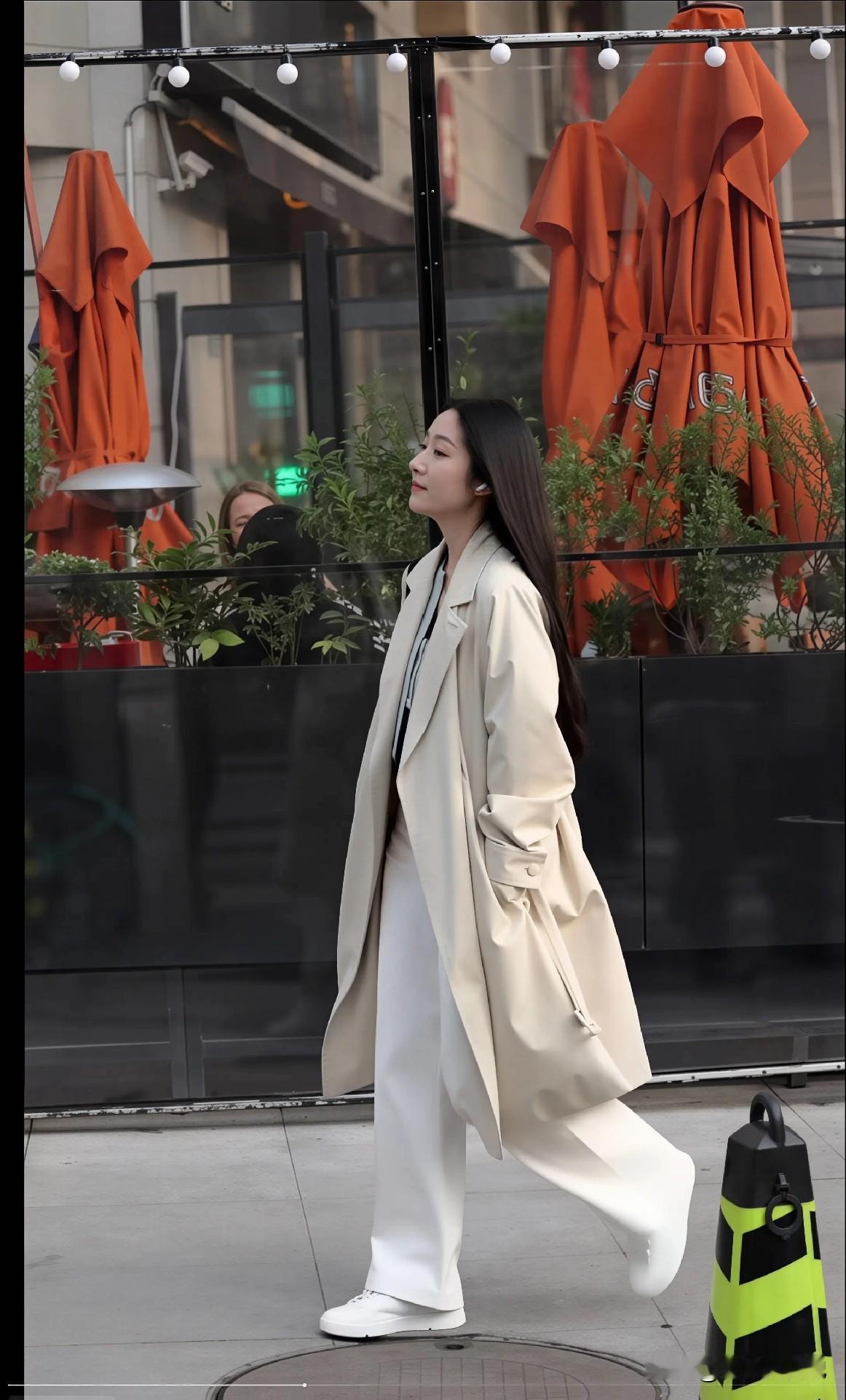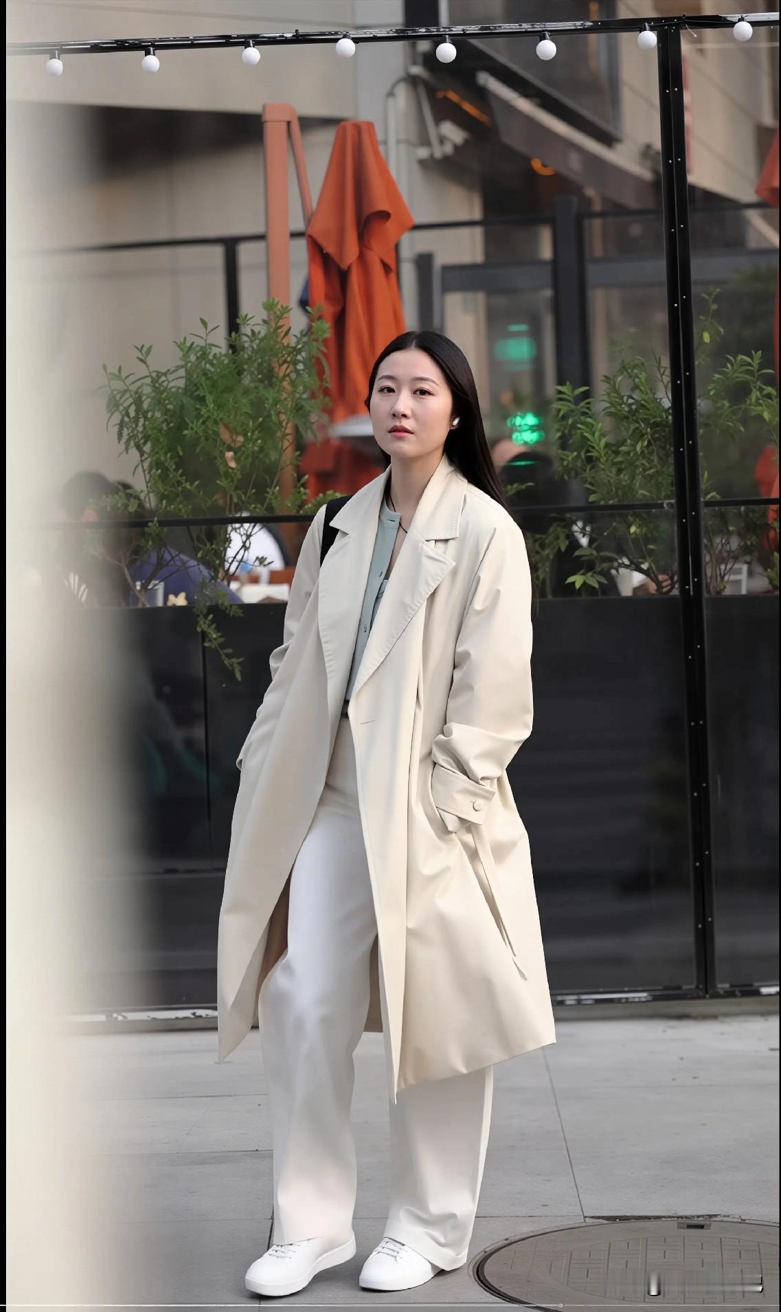 米色风衣+白色阔腿裤,是我今年春天穿上就不想脱的一套。