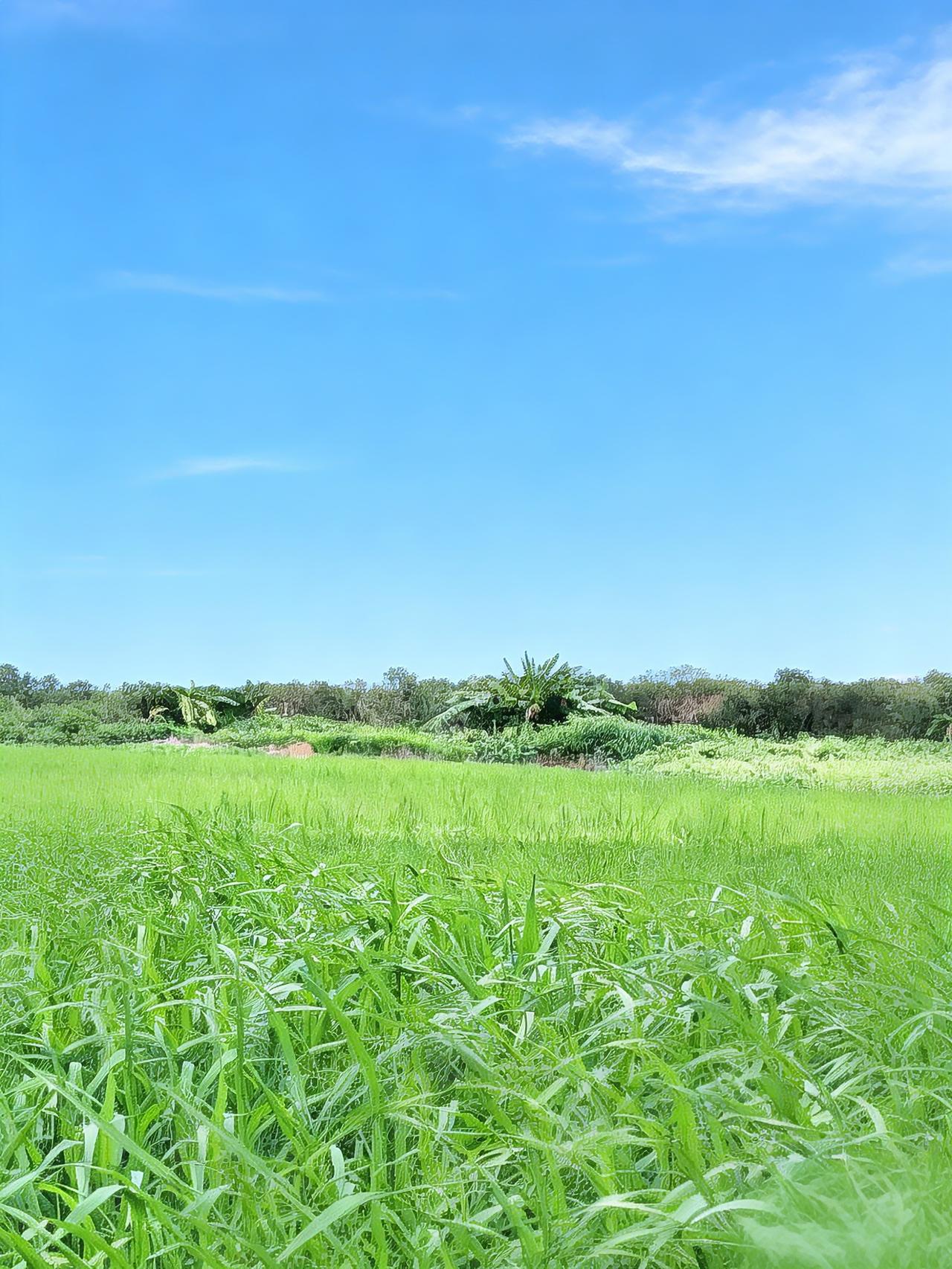 连片的苗叶挤着,嫩得能掐出水,风过处,浪似的晃。远处山尖裹着云,红土坡露着痕,可这田的绿,偏把天的沉都压淡了。
