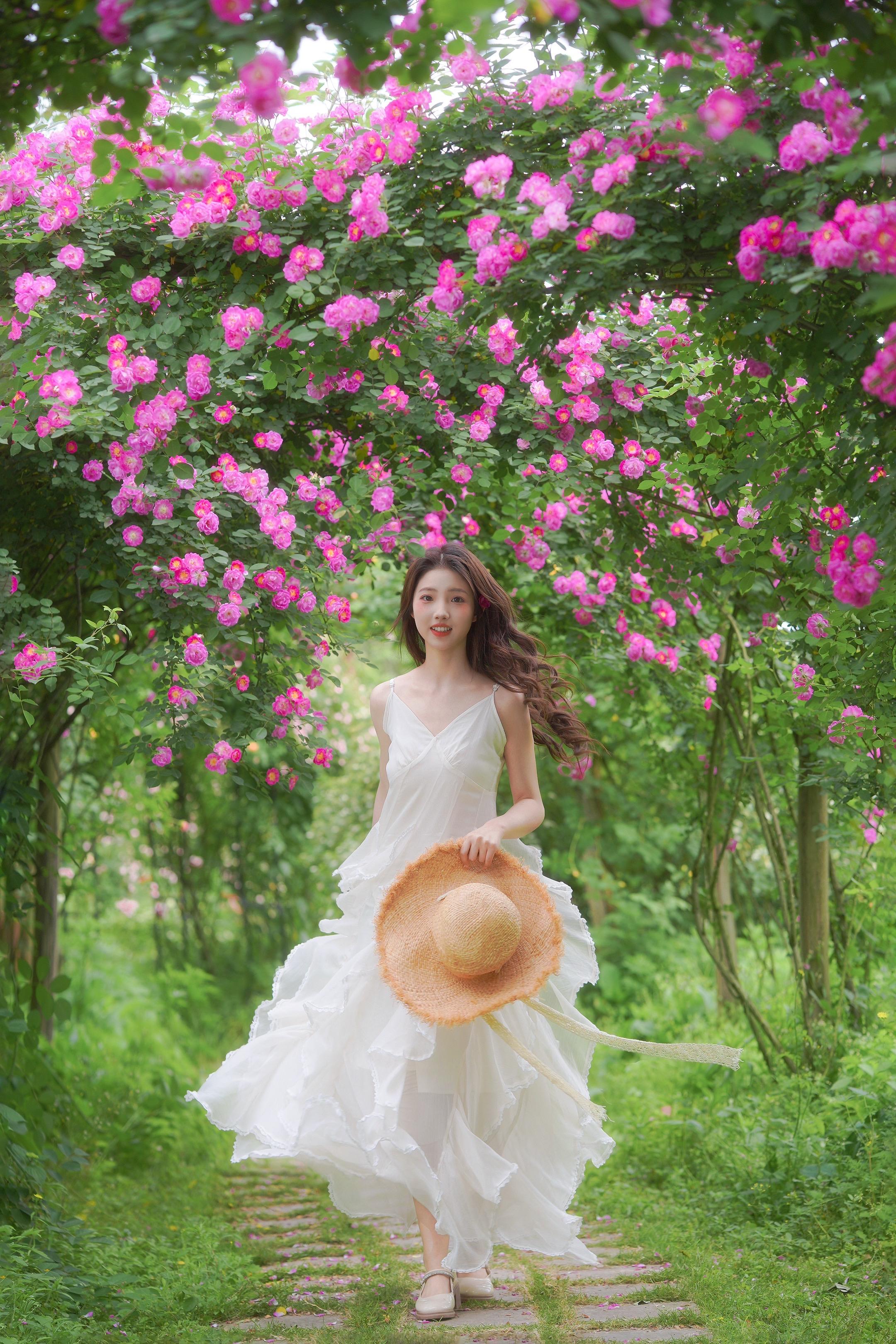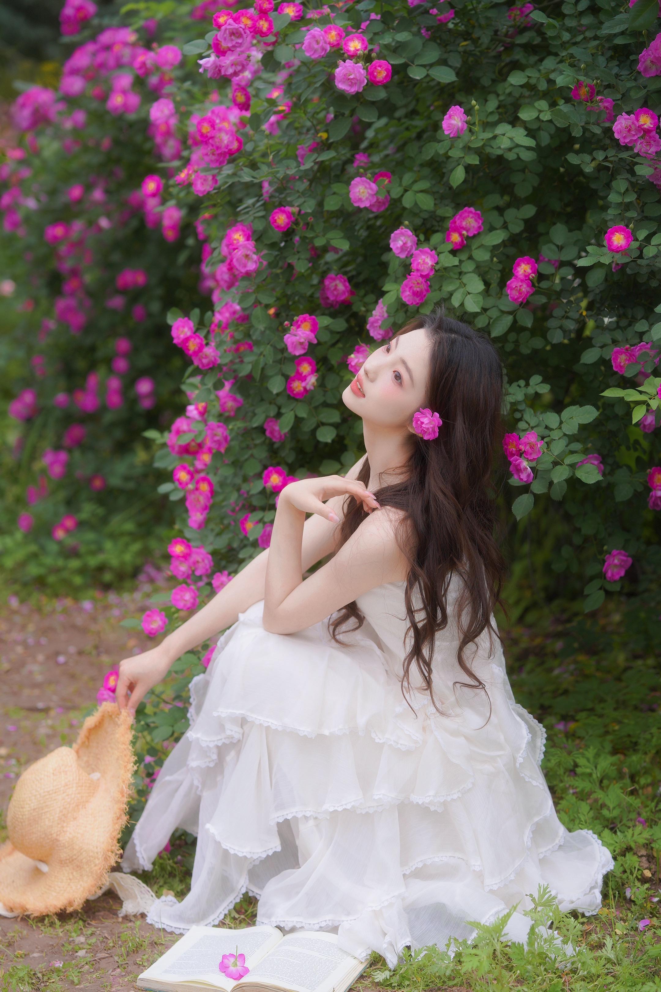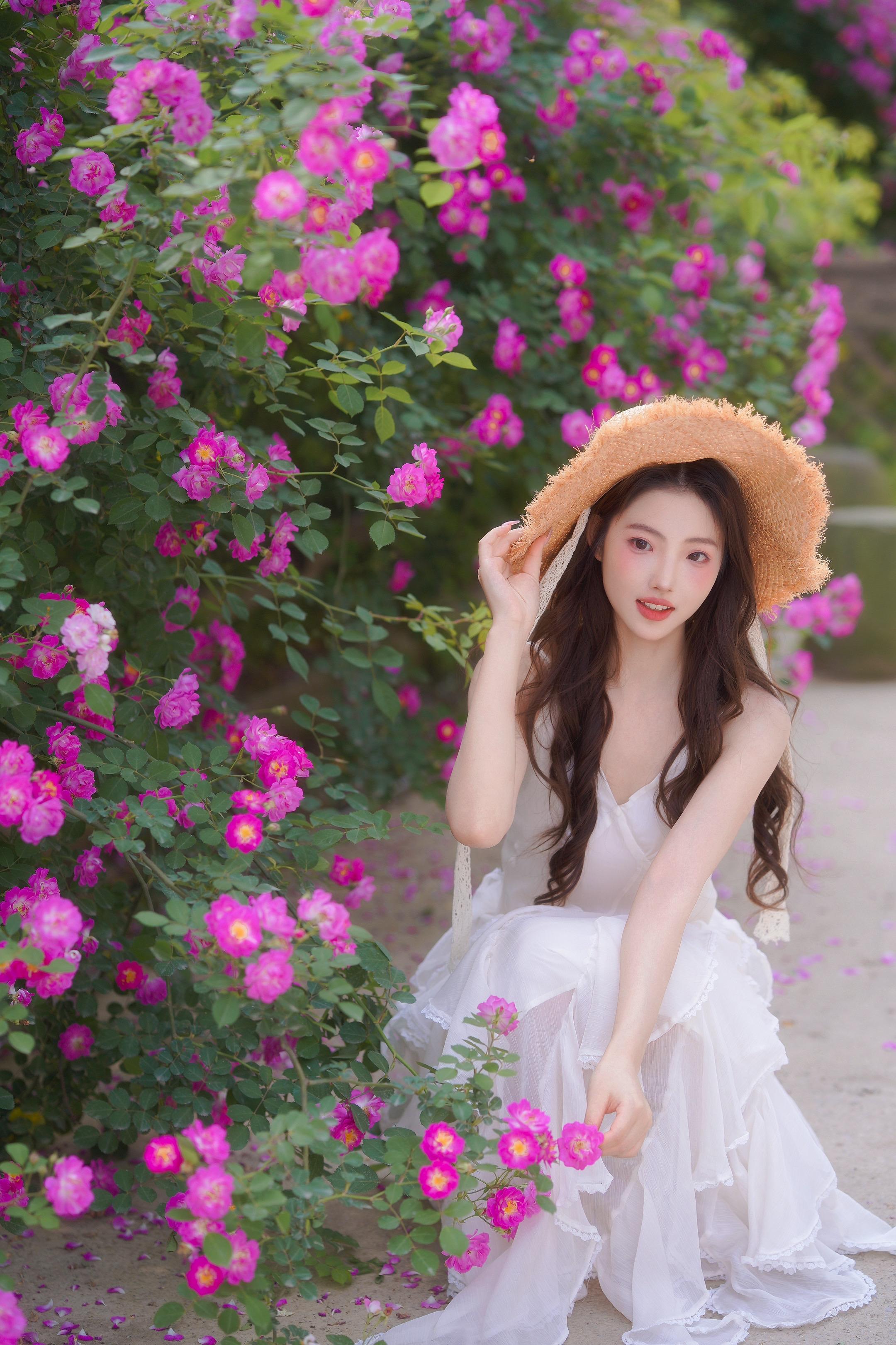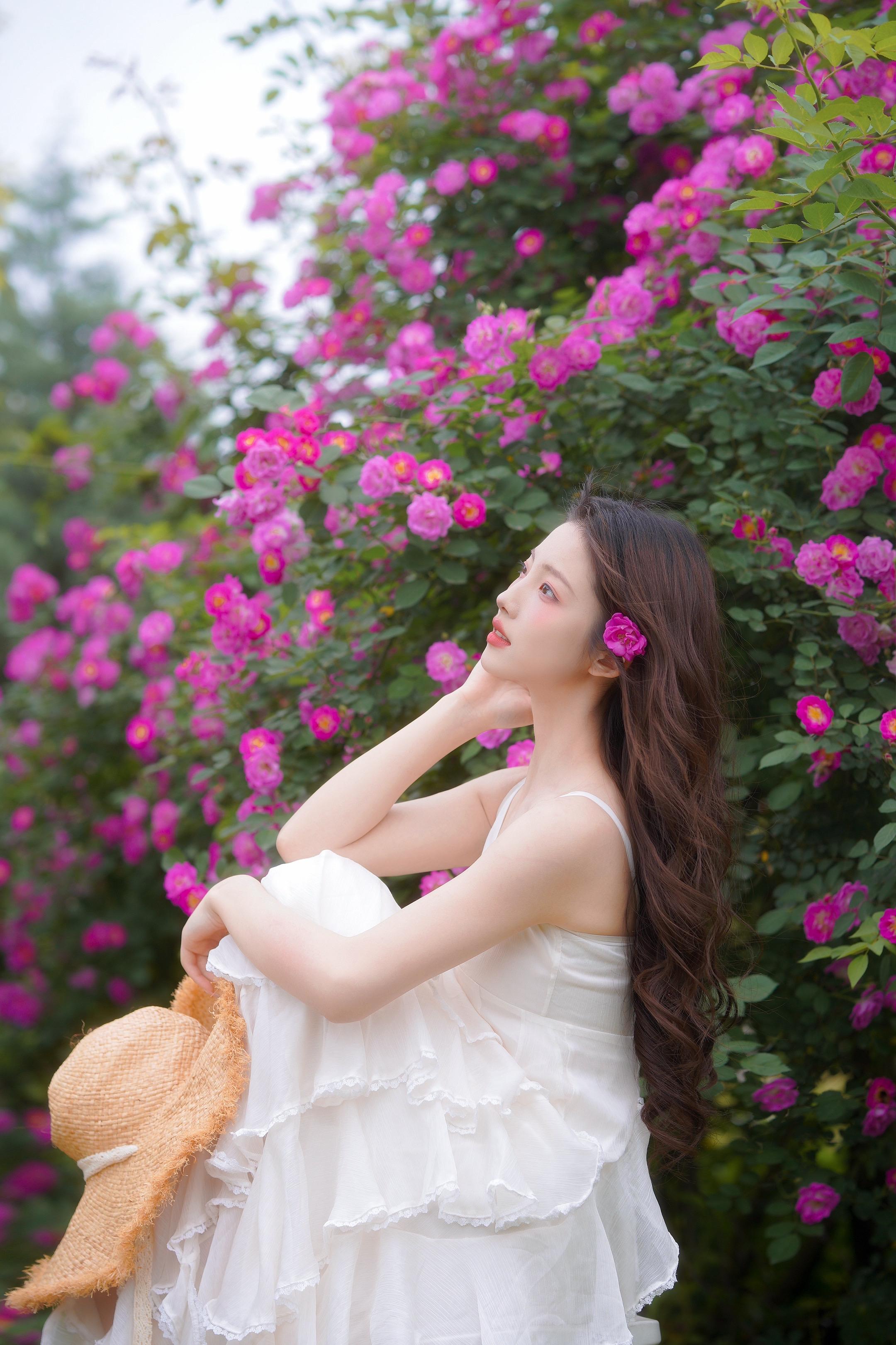 存一些 i 人小幅度春日蔷薇花拍照姿势。