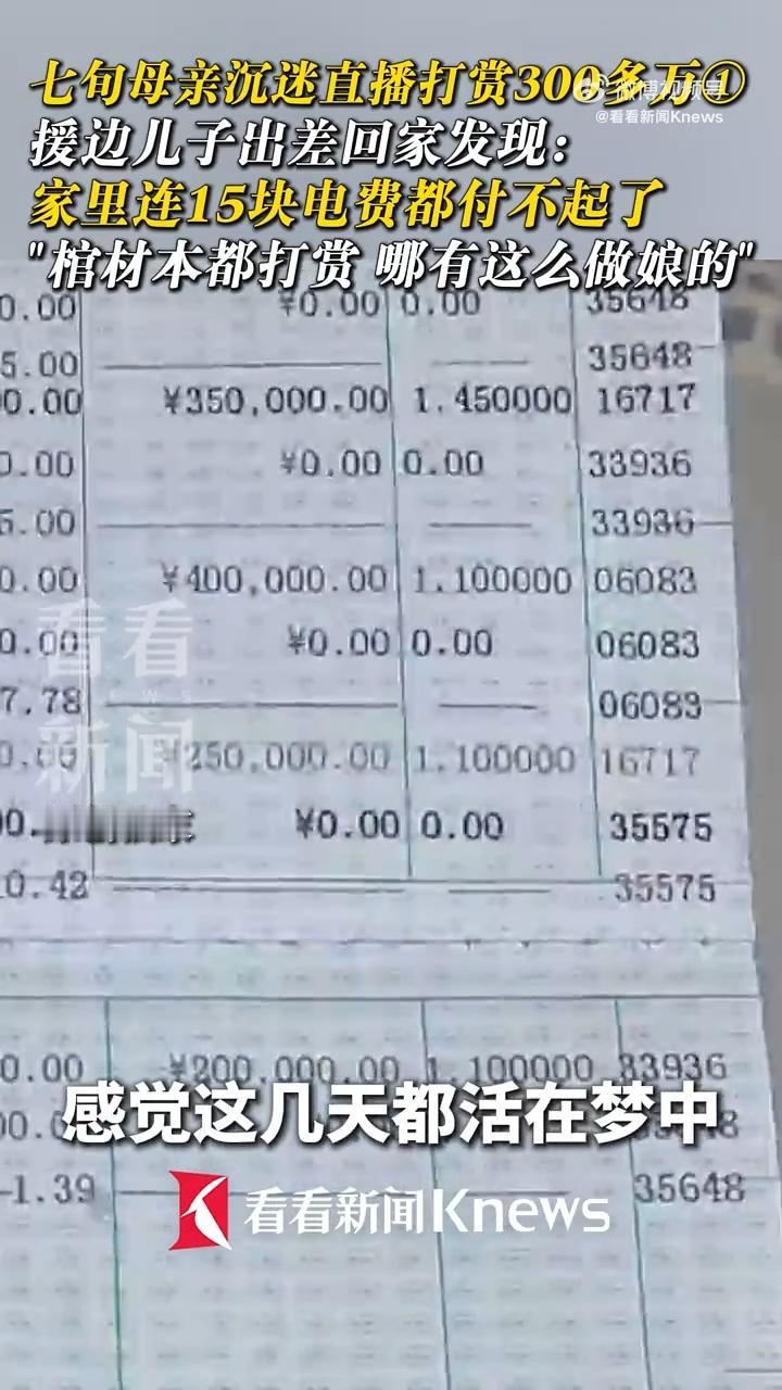 最扎心的人间反差,莫过于此:平时买菜几毛钱都反复还价、勤俭节约一辈子的七旬老人,半年之内疯狂打赏主播330万。可当电费催缴单上门时,她翻遍全身,连区区15元电费都无力缴纳。