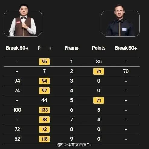 世锦赛战报!丁俊晖10-5土豆哥,会师赵心童,中国至少锁定1个8强丁俊晖10比5吉尔伯特体育 4月20日斯诺克世锦赛正赛第一轮,丁俊晖10-5击败吉尔伯特晋级16强,成为第六位打进本届世锦赛16强选手,中国第三位,前面分别是卫冕冠军赵心童,肖国栋,马克艾伦,马克威廉姆斯,巴里霍金斯,丁俊晖将在1/8决赛对阵卫冕冠军赵心童争夺8强,中国军团至少1人锁定8强!丁俊晖现役排名16名,前中国斯诺克一哥,生涯至今拥有15次排名赛冠军,是中国斯诺克选手排名赛冠军数量最多的,丁俊晖在2016年打进世锦赛决赛,在决赛14-18不敌塞尔比拿到世锦赛亚军荣誉,仅差一个世锦赛冠军就是大满贯选手,本届世锦赛对于丁俊晖来说也是冲击世锦赛最好机会,可以说也是最后机会,以后排名不一定能保留前16名,下一次世锦赛丁俊晖有可能从资格赛开始打了,吉尔伯特今年44岁,现役排名30名,生涯至今5次闯入排名赛决赛,1次排名赛冠军,2021年冠军联赛打进决赛3-1击败马克艾伦夺冠,拿到生涯首个排名赛冠军,丁俊晖和吉尔伯特双方过去7次交手,吉尔伯特5胜2负占据绝对优势,双方最近一次交手是在2019年世界大奖赛,吉尔伯特4-0横扫丁俊晖。时隔时间比较长,目前两个人状态也不好说。第一阶段,丁俊晖上来手感不错打出95-35完成了逆转,第二局,吉尔伯特单杆70扳回一局,丁俊晖打出单杆94,74连下两局拉开到3-1,第四局,吉尔伯特70-44扳回一局,丁俊晖打出单杆100,72,52表现连下四局结束第一阶段比赛,丁俊晖7-2遥遥领先吉尔伯特占据主动权,第一阶段丁俊晖可以说状态相当不错。第二阶段,第10局,丁俊晖上来手感不佳两杆拿到2分,吉尔伯特总分66扳回一局,第11局,丁俊晖单杆65总分66-57逆转拿下,第12局,丁俊晖进攻打到30分底袋出现低级失误黑球没有打进,吉尔伯特一杆致胜单杆78分拿下,第13局,丁俊晖率先上手打出单杆68分出现防守失误,吉尔伯特一杆清台69分逆转绝杀,连下两局追到5-8,双方进入局间休息,第14局,丁俊晖率先进攻打到13分转换防守,吉尔伯特纠结很久拼一杆长台没有打进,丁俊晖再次上手,轰出单杆破百106拿下9-5拿到赛点,第15局,吉尔伯特率先进攻打到35分转换防守,丁俊晖上来做一杆防守再说,丁俊晖长台进攻打进打到61分做一杆斯诺克防守相当成功,吉尔伯特解球被罚了4分,丁俊晖再次进攻拿到80分拿下比赛,10-5击败吉尔伯特晋级16强,恭喜丁俊晖!